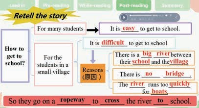 将全班学生进行合理分组。在七下第三单元的阅读课上Crossing the River to School,我设计了一个读后活动, 此活动主要包括三类问题:(1)推断选择题:根据课文内容推断接下来会发生什么事;(2)续写: 根据文章的写作意图, 为文章续写至少5句话;(3)自由讨论题: 如果你是一个志愿者, 你会怎样帮助他们。虽然这三个问题设计意图一样: 要求学生在理解