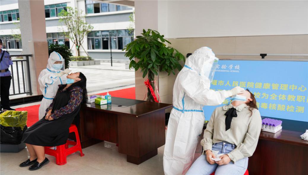 十堰市人民医院健康管理中心医务人员到我校为全体教职员工进行核酸检测,确保我校秋季能够正常、有序、安全开学。