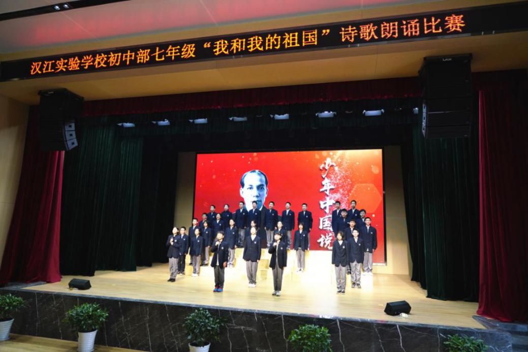 初中七年级举行“我和我的祖国”爱国主义诗歌朗诵比赛。