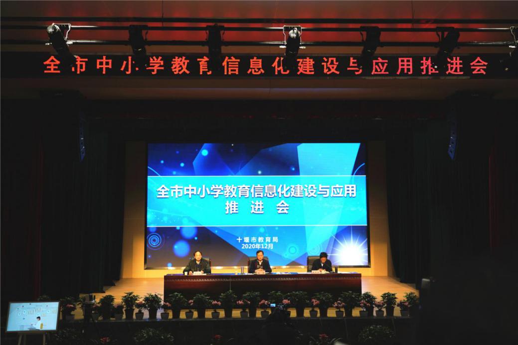 十堰市教育局在我校召开“十堰市2020年中小学教育信息化建设与应用推进会”。我校校长朱仕竹作《建设现代5G校园,探索新型教育模式》工作汇报。