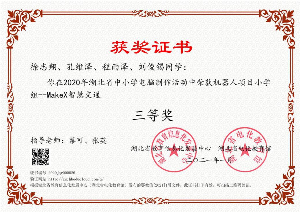 我校教师指导学生在2020年湖北省中小学电脑制作活动竞赛中荣获省级二等奖。