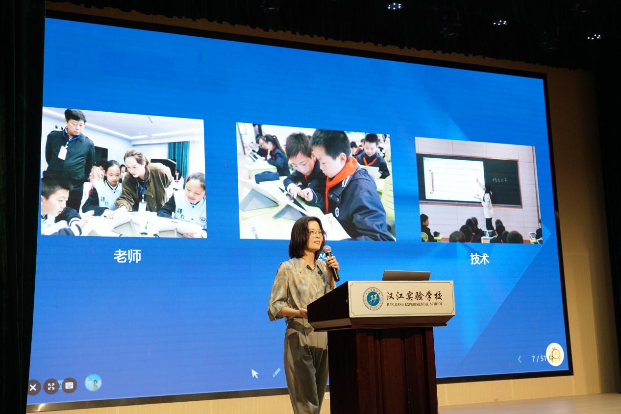 优化课堂教学模式,有助于构建高效课堂,提升教学质量。汉江实验学校副校长、湖北省特级教师王宇结合30余年从教经验,为教师们作了《“智”在教学,“慧”出高效》主题讲座。王校长以“有度、有序、有法、有生”为关键词,深挖课堂教学内核,分享了自己课堂教学质量提升的制胜法门。随后,小学部数学教研组组长刘凤姣、数学教师许敏和初中部英语教研组组长赵贞贞、英语教师孔德伟依次分享了自己探索高效课堂的心得及学科教研的成果。