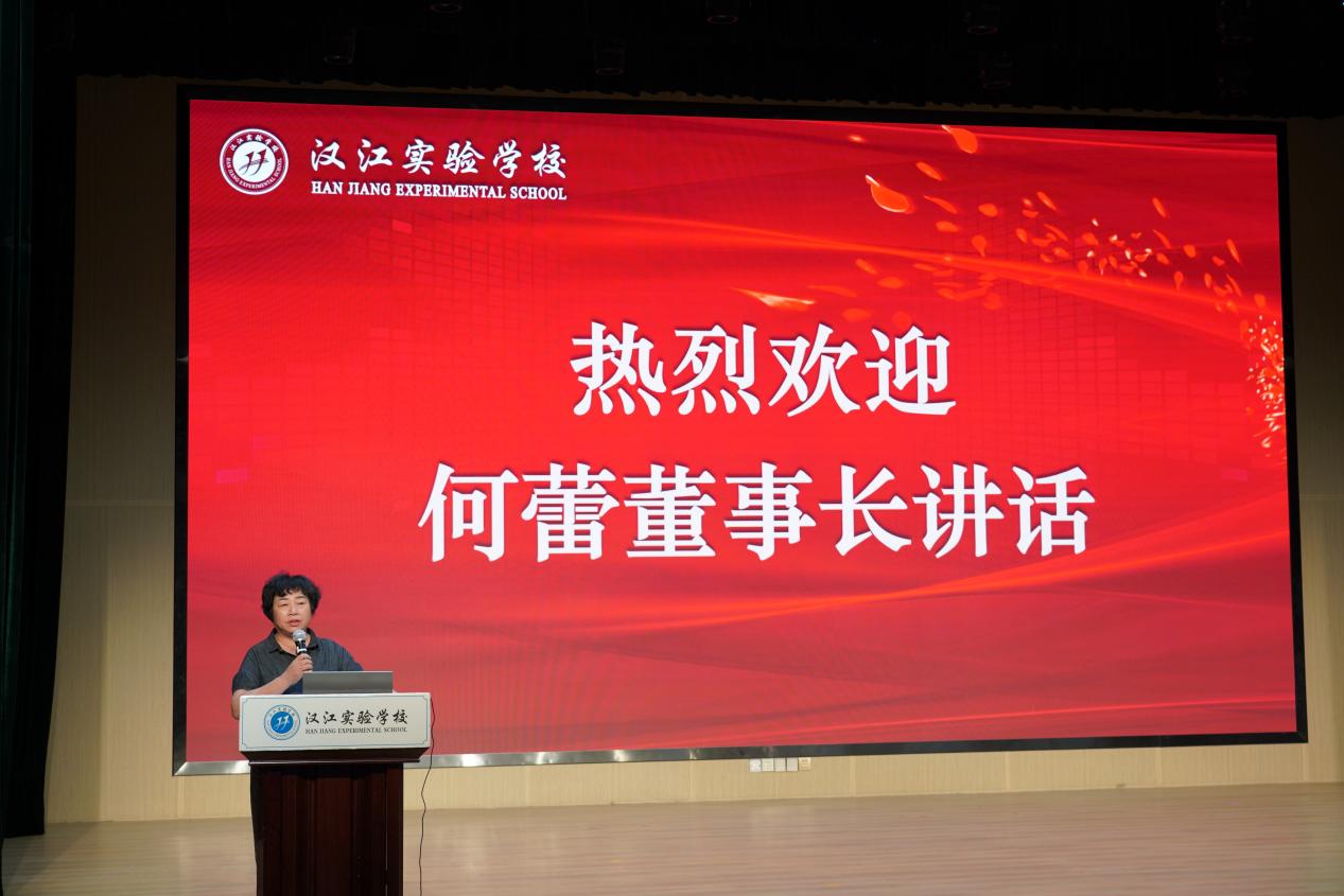 最后,董事长何蕾发表总结讲话。何董事长对参与培训的全体教职工给予关心和问候,对大家的辛勤付出表示肯定,并提出三点要求;第一,遵守国法,教职工积极学习法律法规,规范个人行为,尽职尽责完成己任,加强宣传和教育引导,将法律知识普及到课堂当中。第二,谨遵汉江实验学校的“家法”,学习落实学校各项规章制度,精诚团结互帮互助,共同建设温暖友爱的汉实大家庭。第三,各位校长、各部门领导带领全体教职工全力以赴落实学校各项工作,全体教师互相监督、廉洁从教,为学生的健康成长营造良好的教学环境。“有国才有家,有了各级政府的支持,才有汉江实验学校的今天。汉实人要坚决拥护共产党,紧跟党的脚步,培育爱党爱国爱家的好学生!”何董事长的话语振奋人心,也将爱党爱国的家国情怀厚植于每一个汉实人心中。