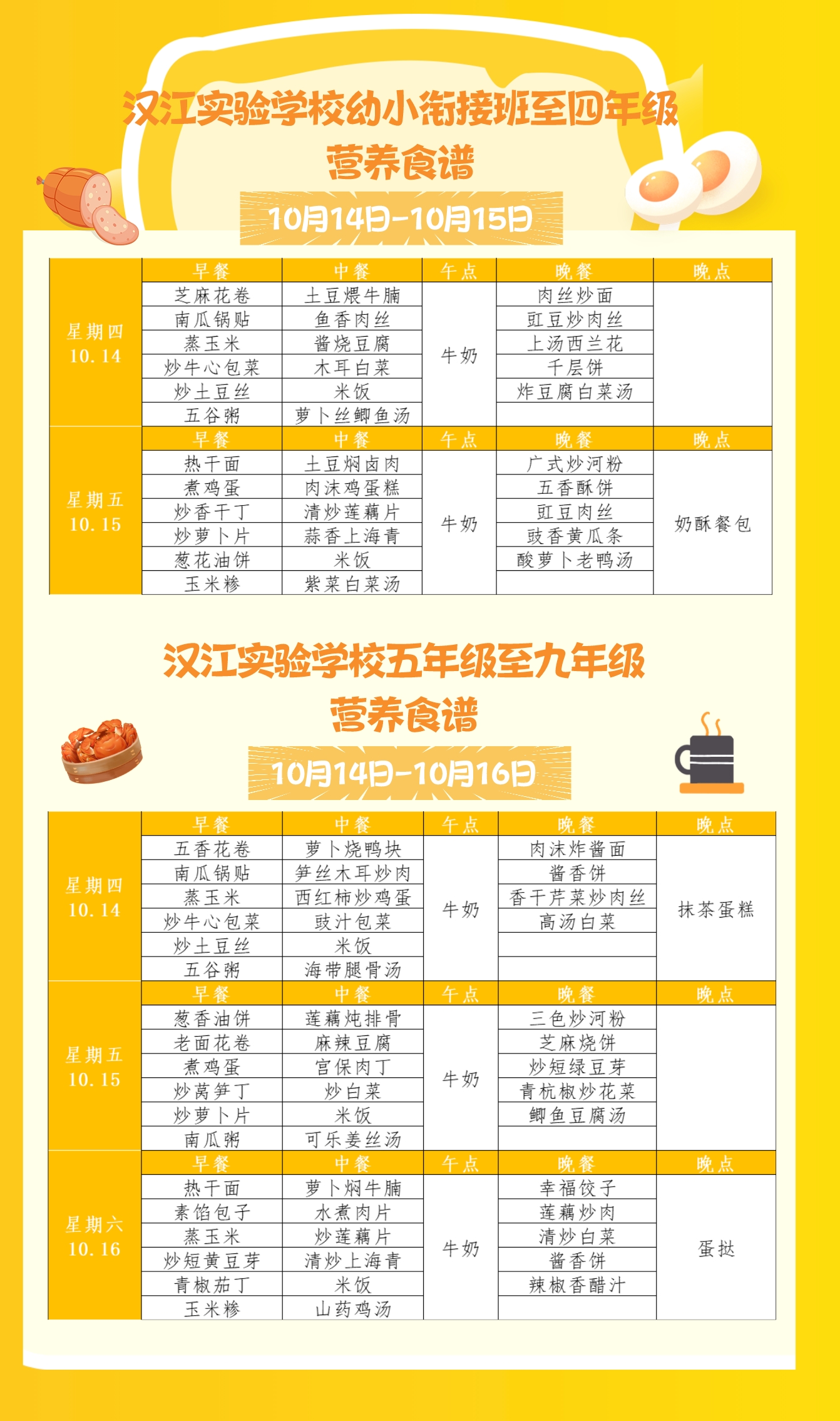 汉江实验学校2021年10月14日-2021年10月16日学生食谱公示