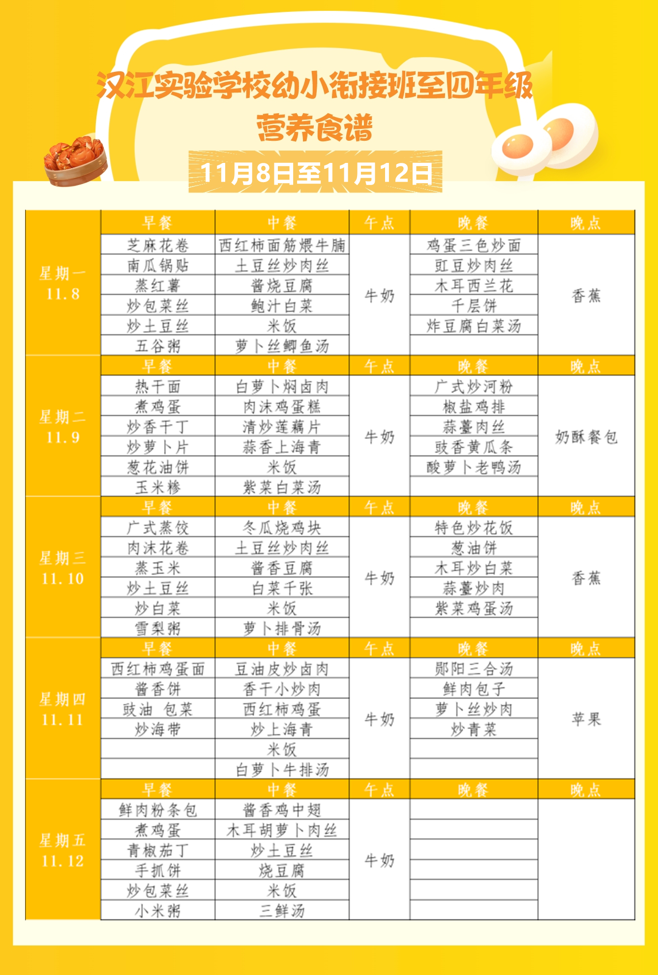 汉江实验学校2021年11月1日-2021年11月6日学生食谱公示