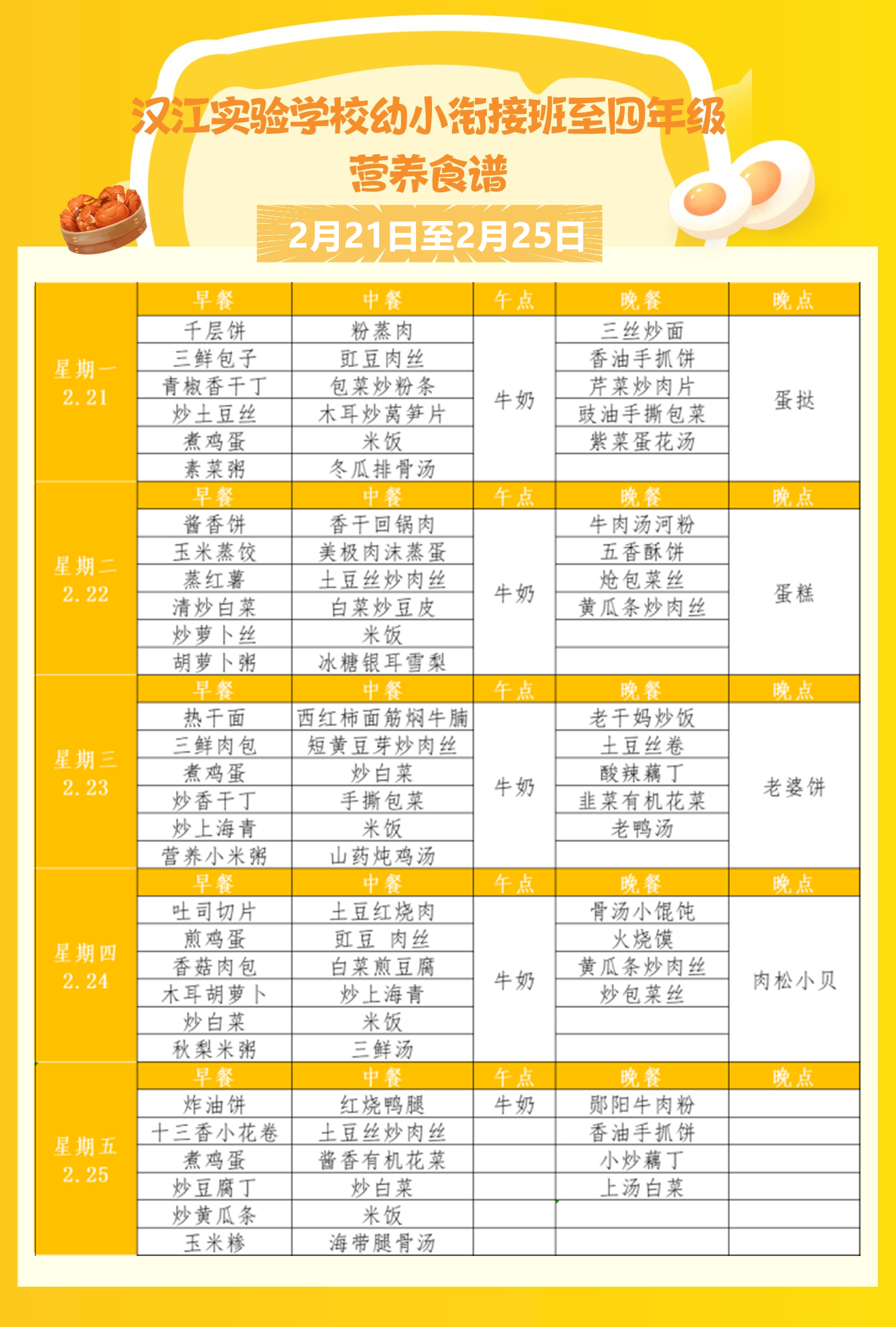 汉江实验学校2022年2月28日-2022年3月5日学生食谱公示
