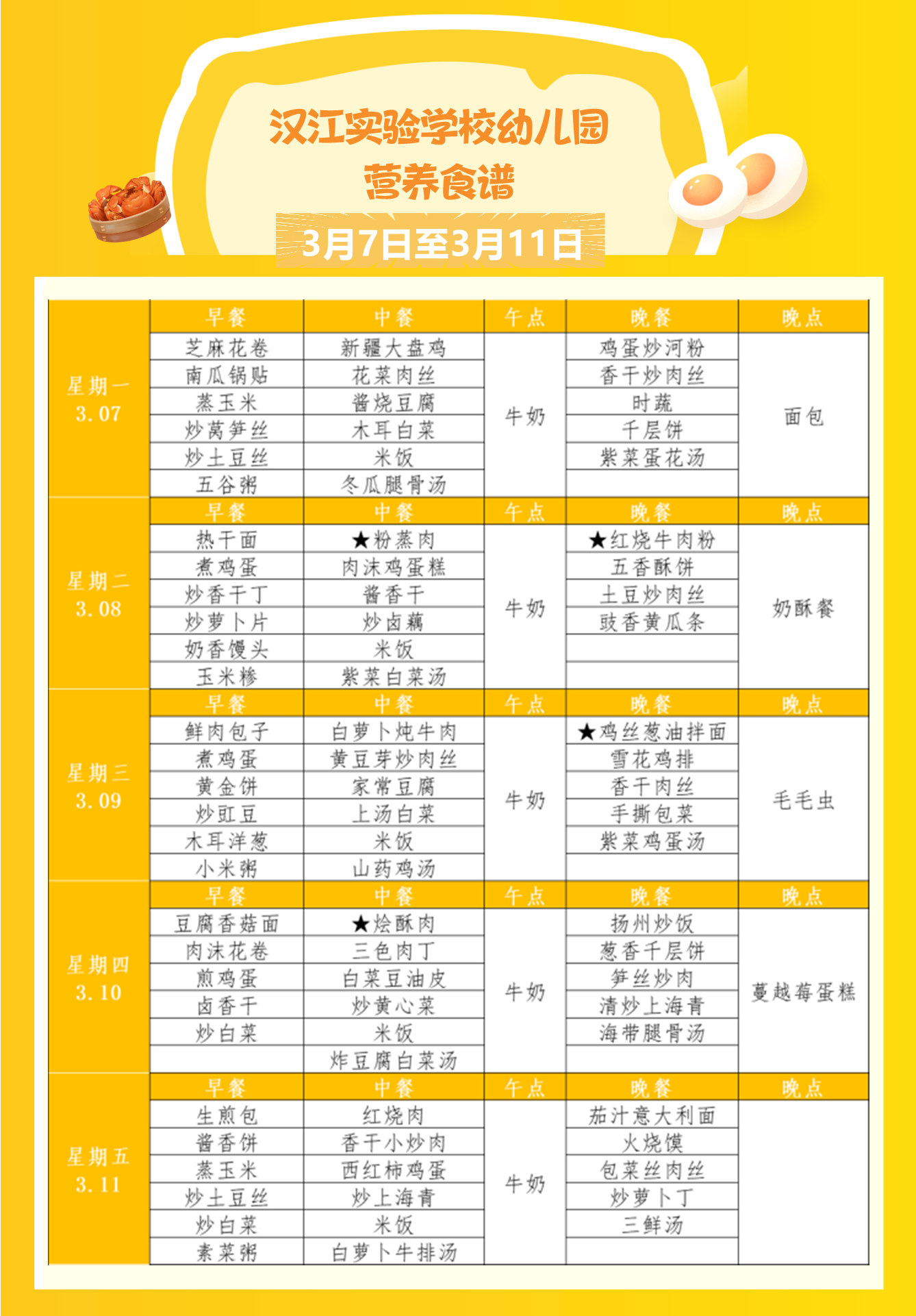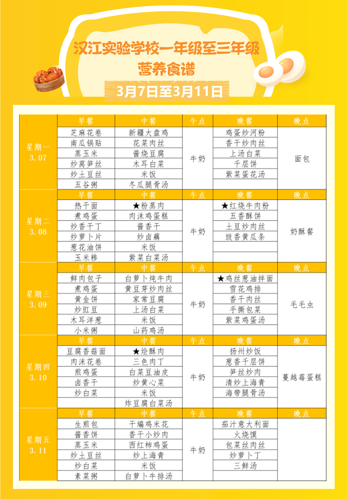 汉江实验学校2022年3月7日-2022年3月12日学生食谱公示