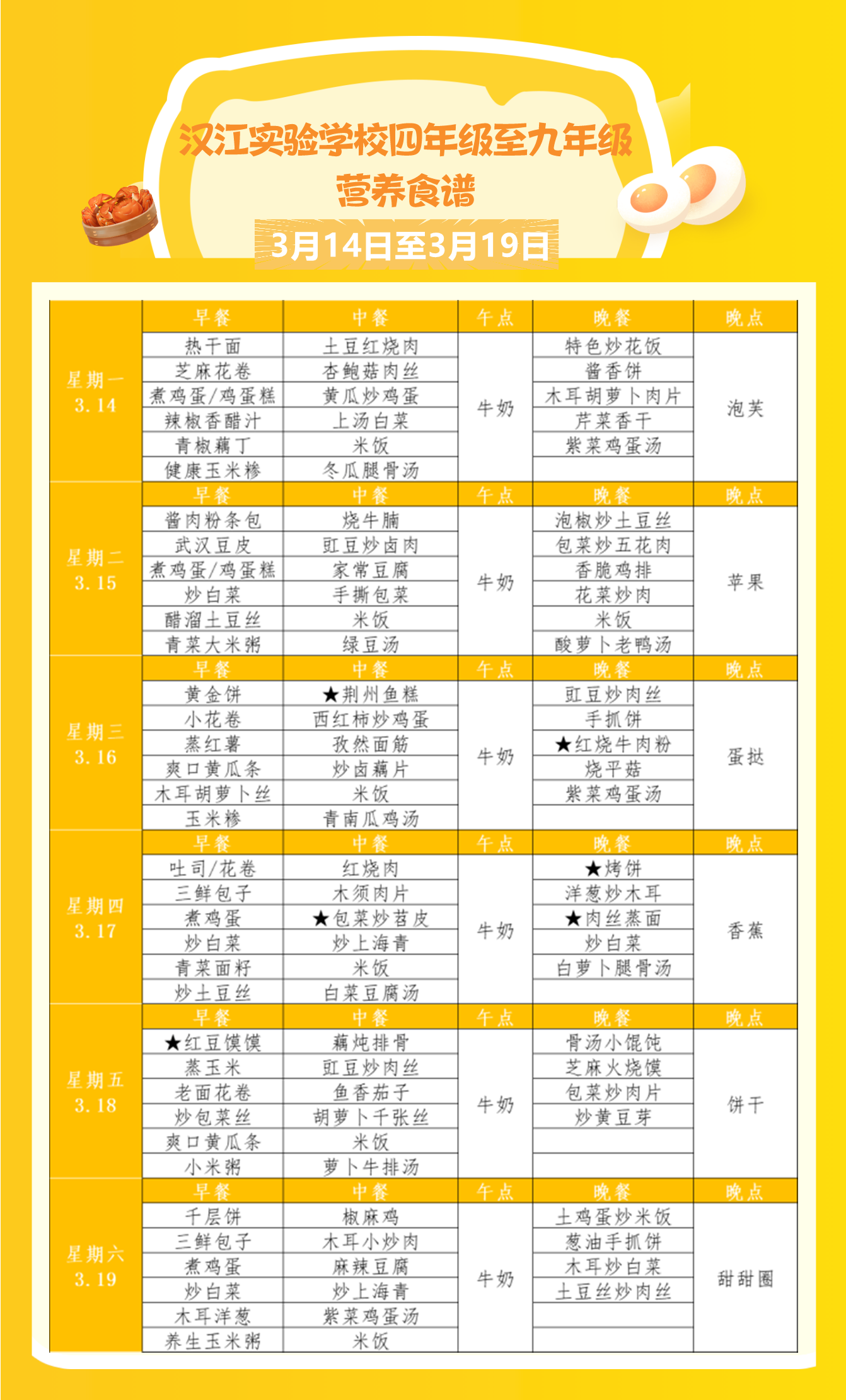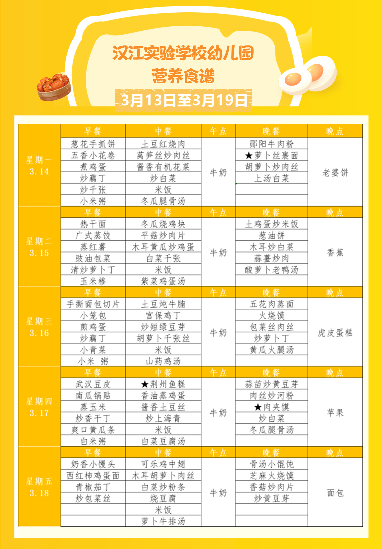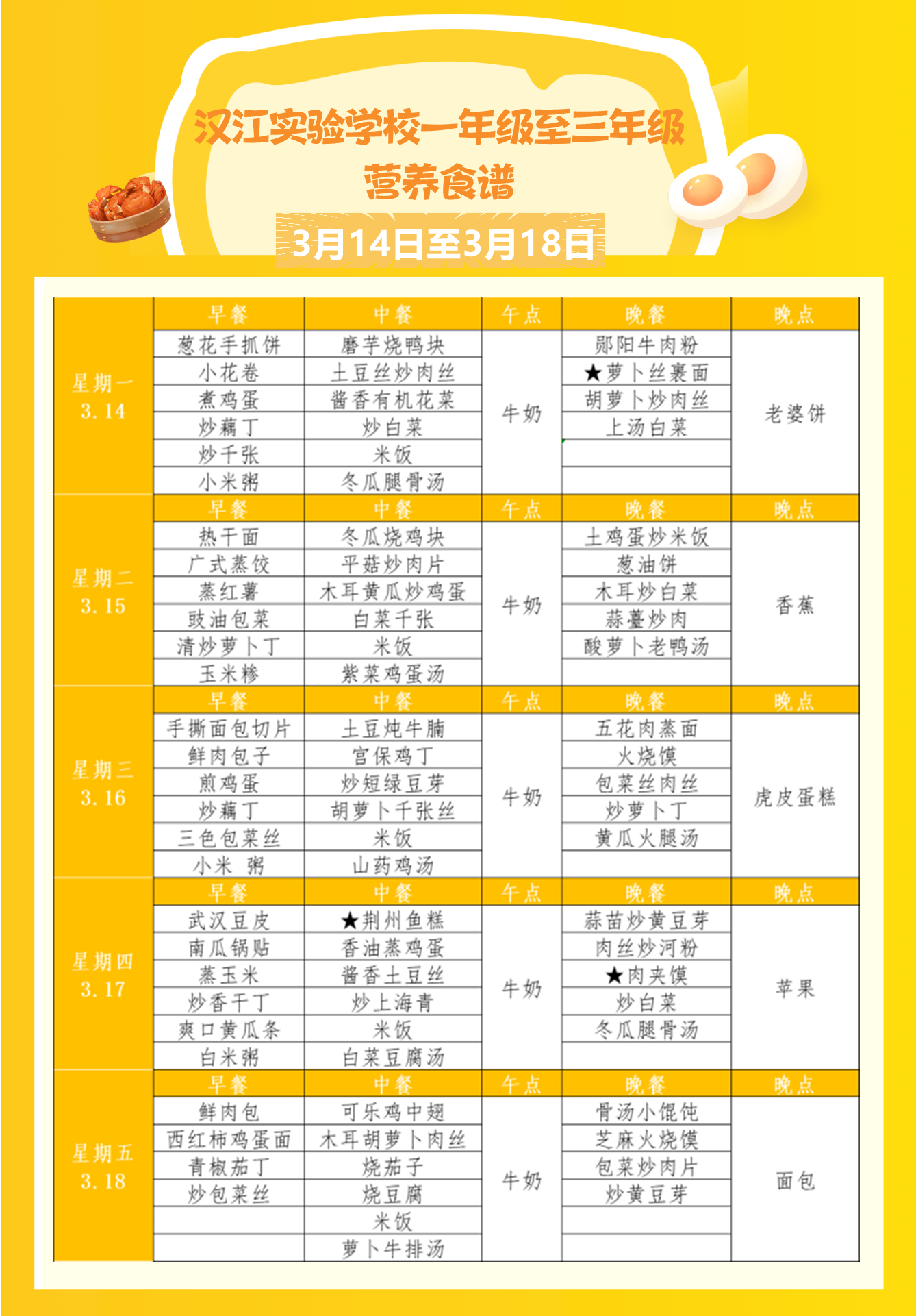 汉江实验学校2022年3月14日-2022年3月19日学生食谱公示