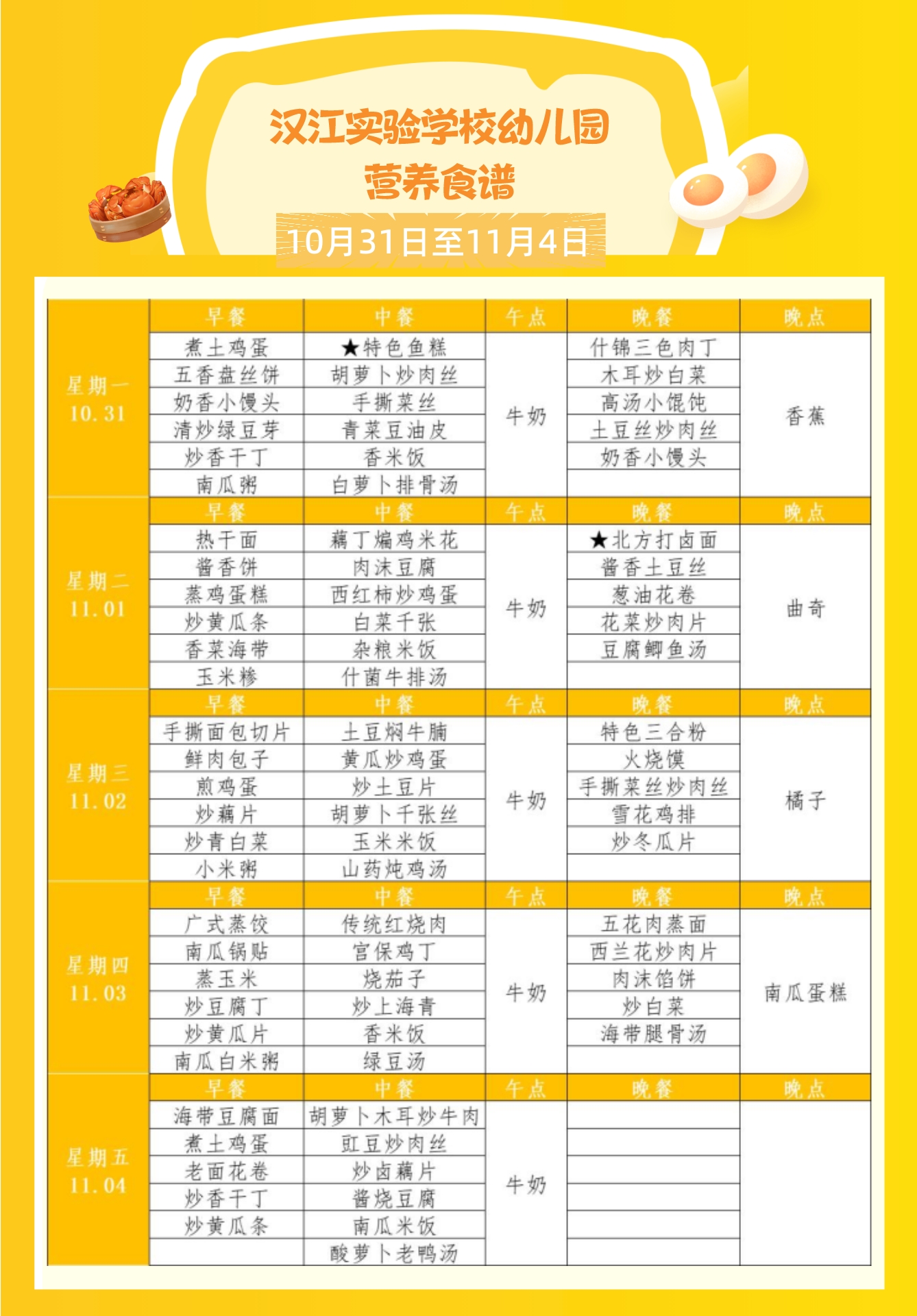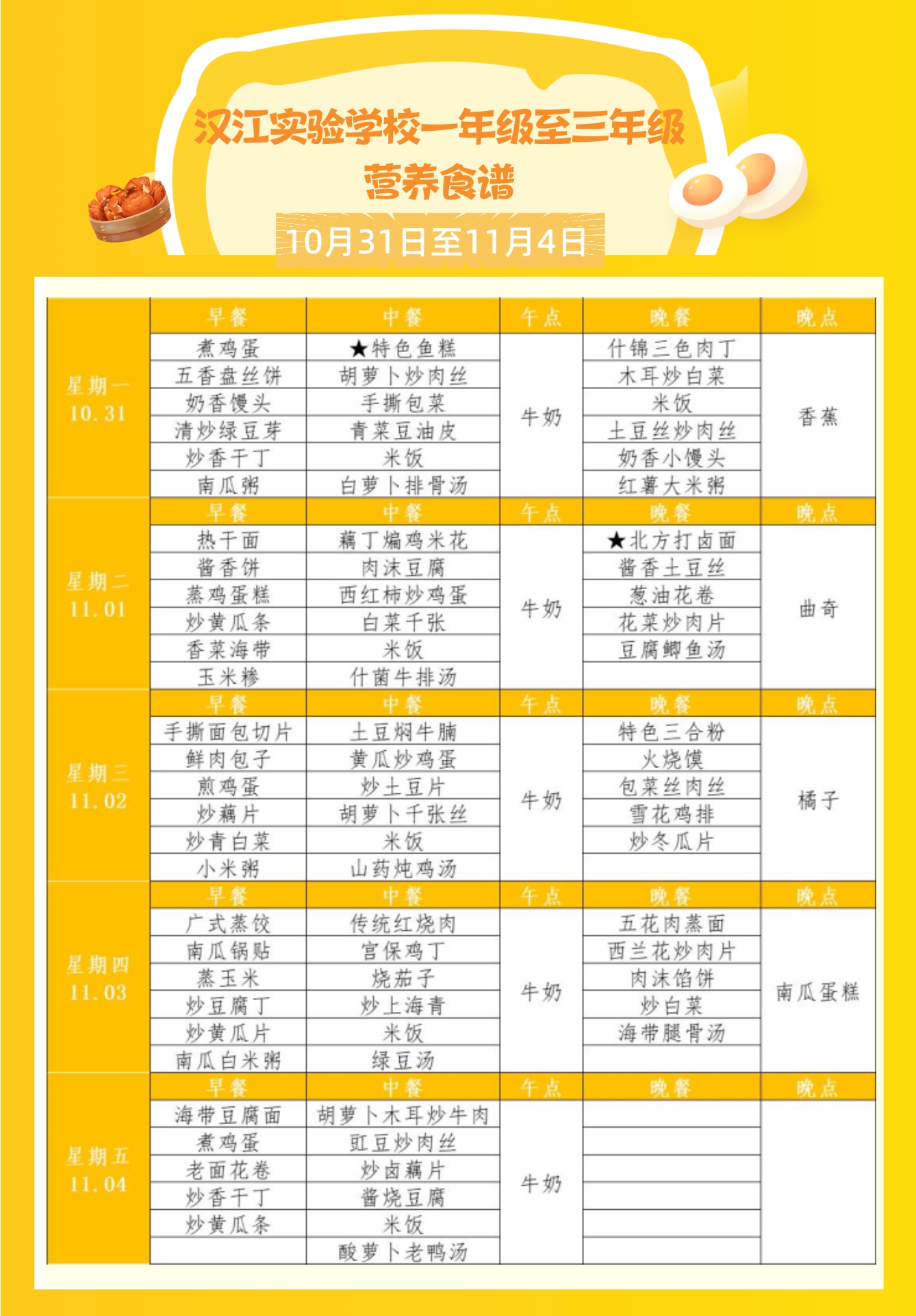 汉江实验学校2022年10月31日-2022年11月5日学生食谱公示