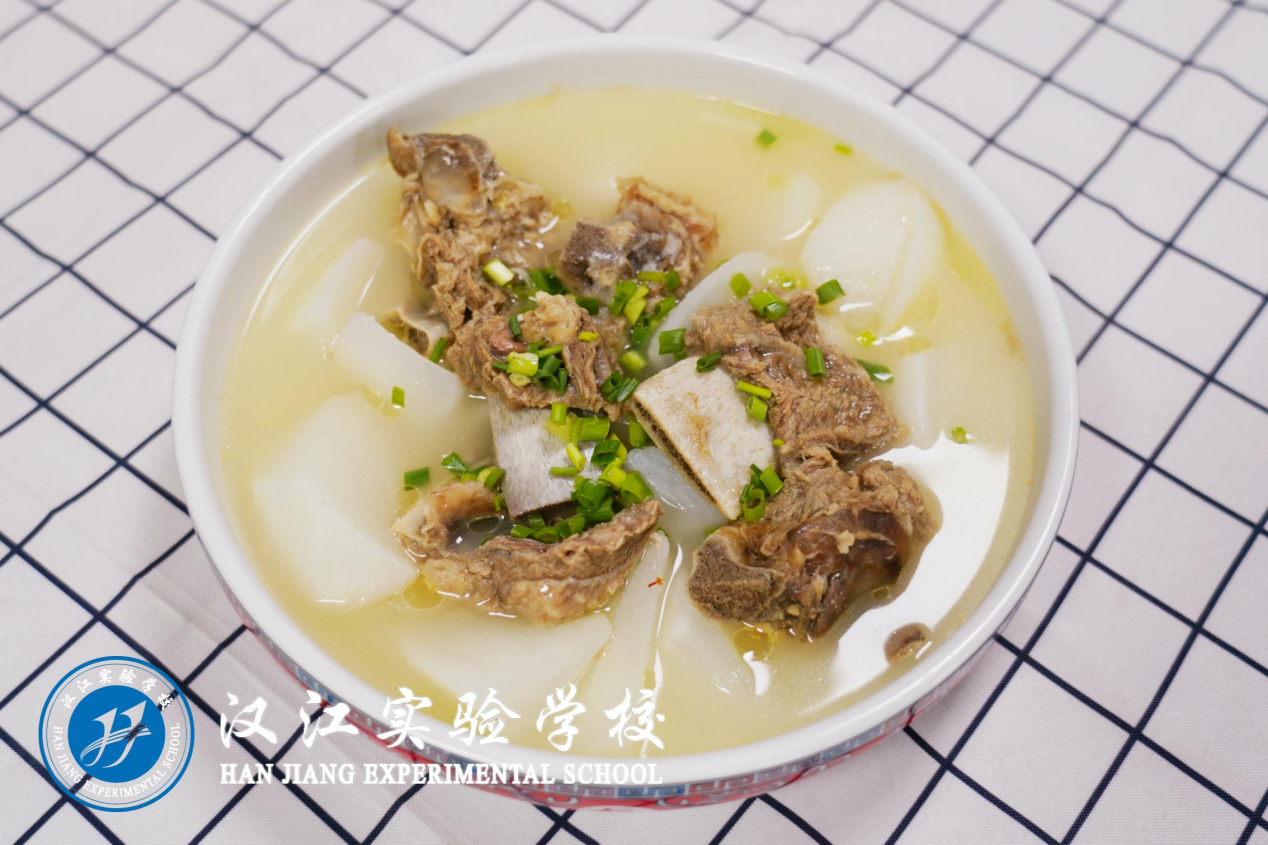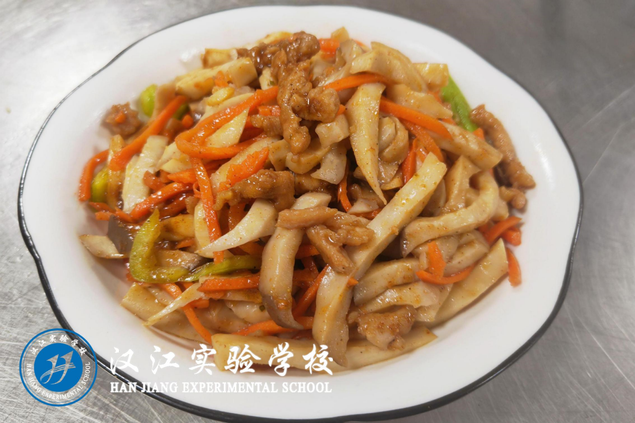 晚餐:特色牛肉粉、火烧馍(4—6年级)、芝麻糖包(1—3年级)、包菜炒肉丝、炝炒萝卜缨