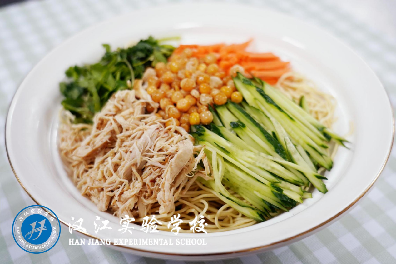 晚餐:鸡丝热拌面、鲜肉包子(1—3年级)、炸春卷(4—6年级)、手撕包菜丝、黄瓜条炒肉丝、冬瓜腿骨汤