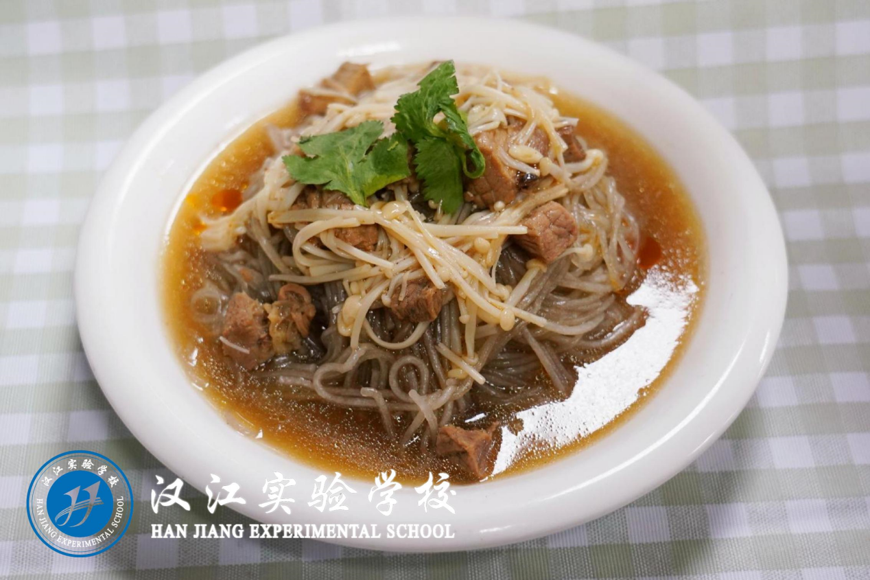 晚餐:牛肉红薯粉(1—3年级)、③鸡汤小馄饨(4—6年级)、火烧馍/馍馍干、炝包菜丝、黄瓜条炒肉丝、
