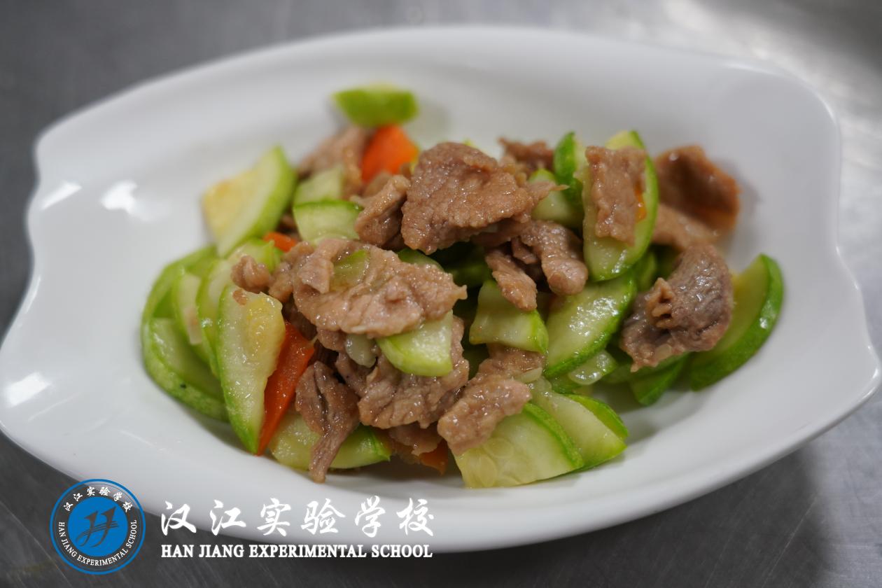 中餐:土豆烧牛腩、汉江下饭菜、炒冬瓜片、炒油麦菜、杂粮米饭、丝瓜肉片汤