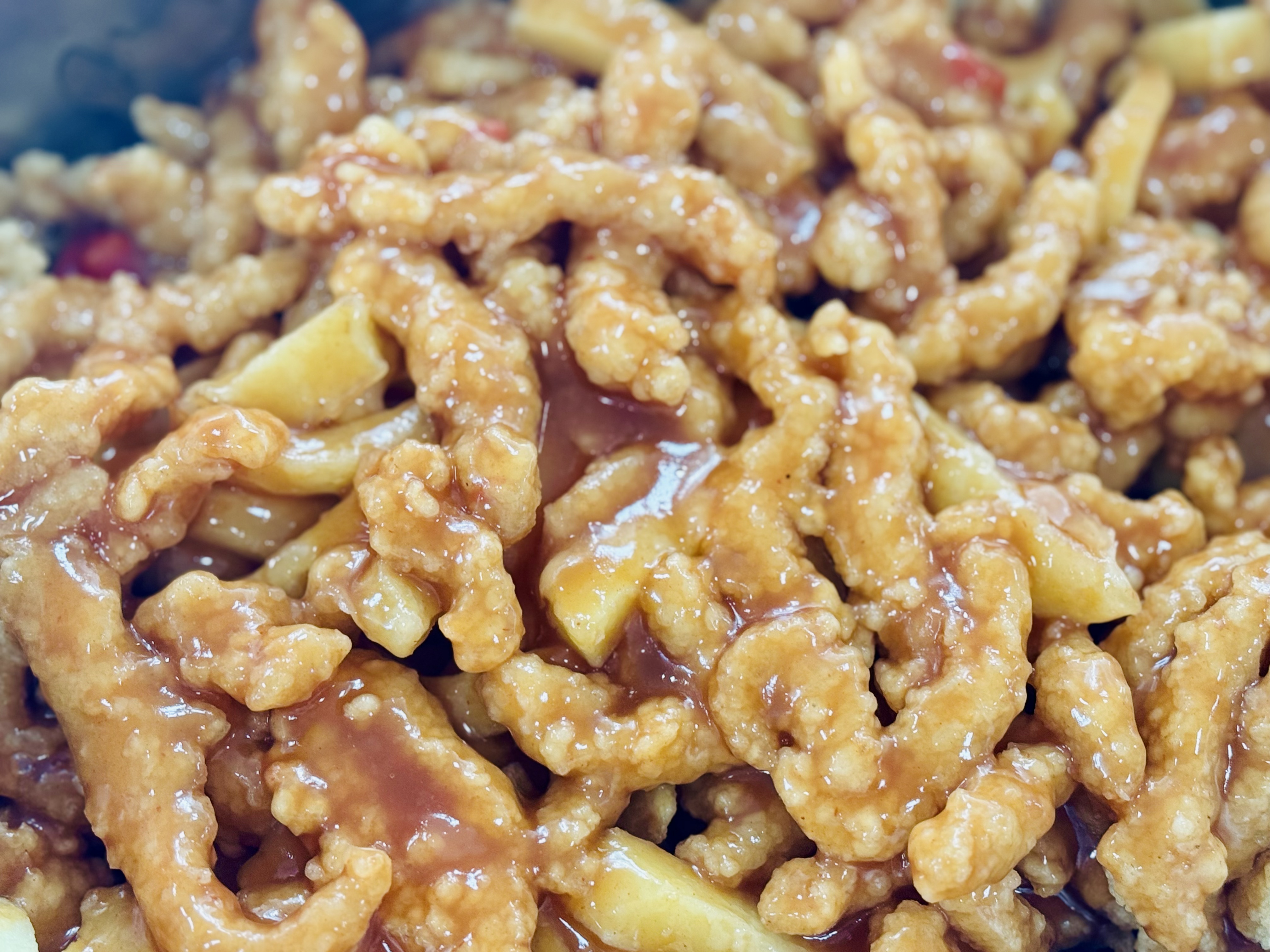 中餐:糖醋里脊、汉江下饭菜、白菜腐竹、肉沫鸡蛋糕、三鲜汤、米饭