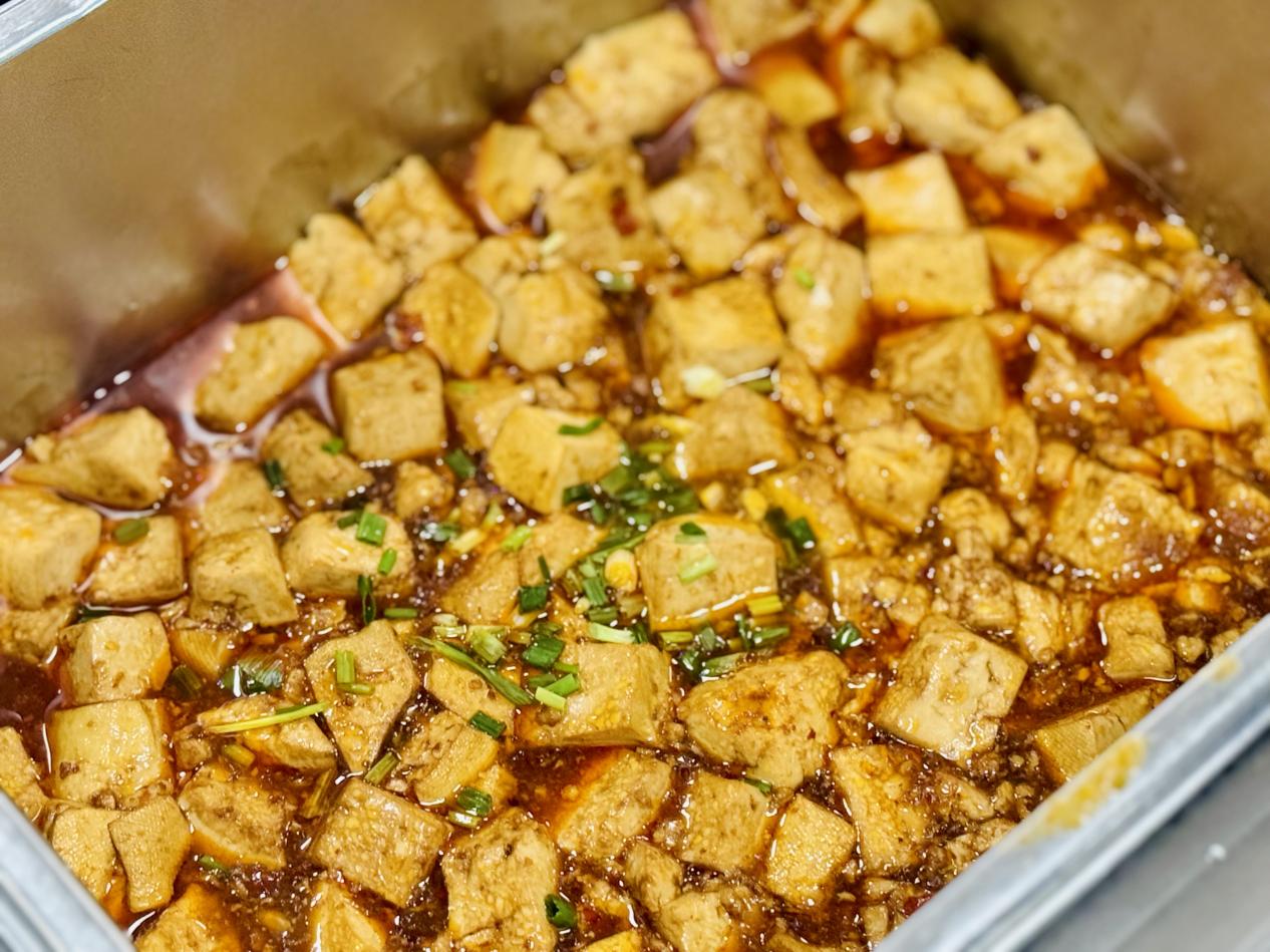中餐:粉蒸肉、三色鸡丁虾仁、麻婆豆腐、白灼生菜、西红柿蛋汤、米饭