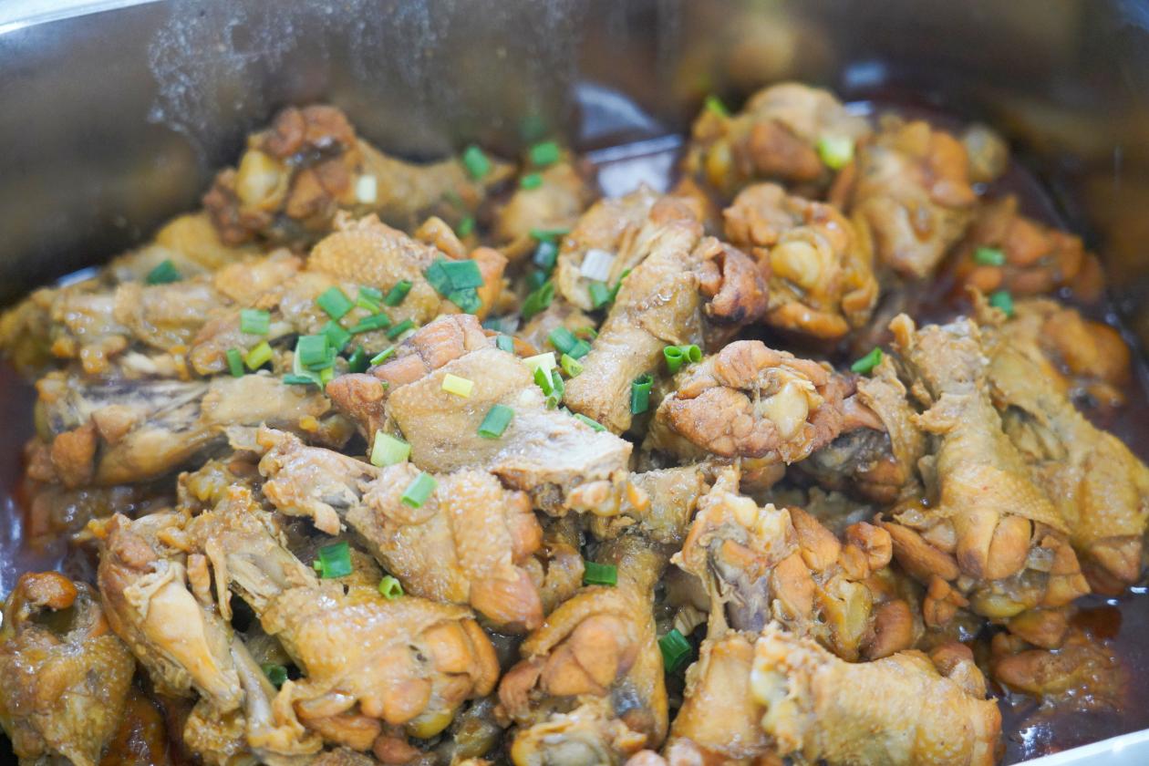 中餐:香酥孜然鸡块、豇豆肉丝、孜然藕条、菠菜炒鸡蛋、玉米腿骨汤、米饭