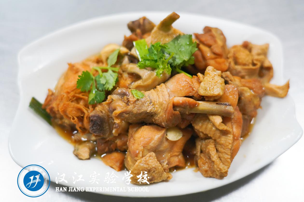 中餐:椒麻鸡、汉江下饭菜、芙蓉蒸蛋、地黄瓜炒培根、龙骨汤、米饭