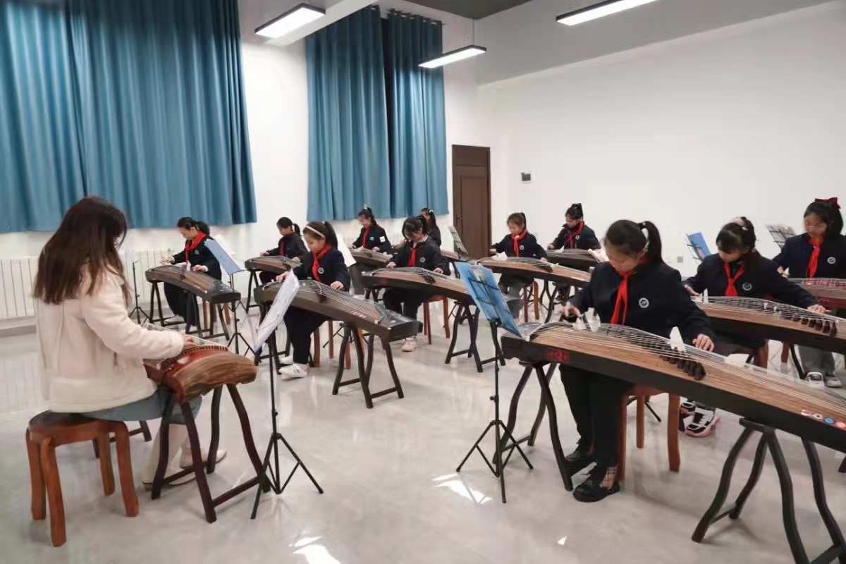 本校古筝社团会针对有基础和无基础的学生进行分组教学。对于有古筝基础的学生进行基本功的巩固、对乐曲的理解;对于零基础的古筝学员会按照以下步骤进行教学:理论讲解——教师示范——学生练习——小组练习——教师巡回指导——参加表演活动。