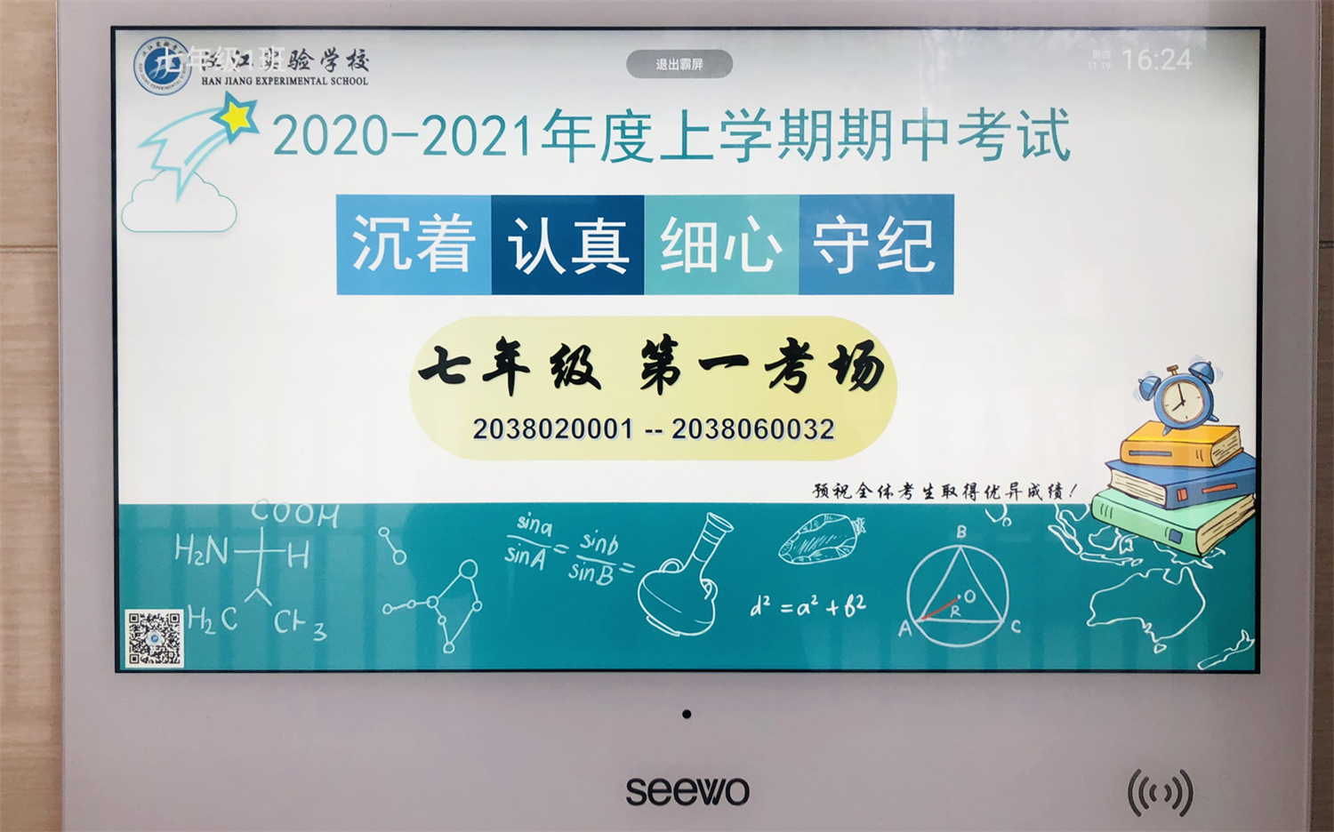 自11月16日起,汉江学子们已进入了紧张的复习、备考阶段。考试前,孜孜不倦、披荆斩棘,风华少年夙夜匪懈逐梦想;考场上,全神贯注,奋笔疾书,汉江学子专心致志展宏图。
