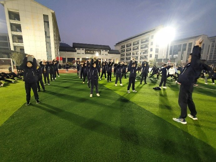 早上6点30的早操、上午9点30的课间操、下午4点的课间操和学生们一起训练;三餐的陪伴、晚寝前的陪伴,从未缺席。