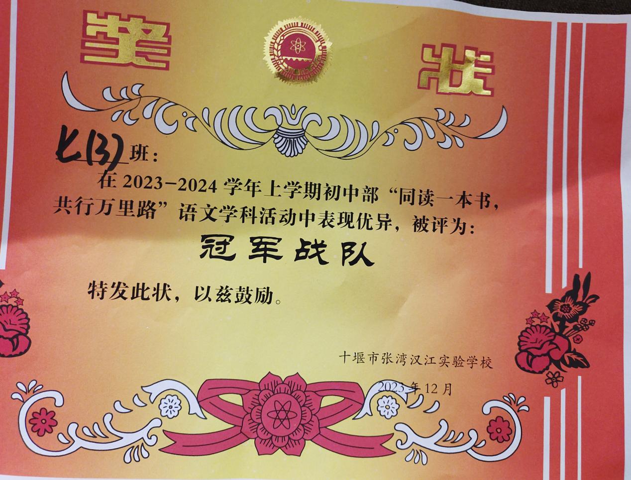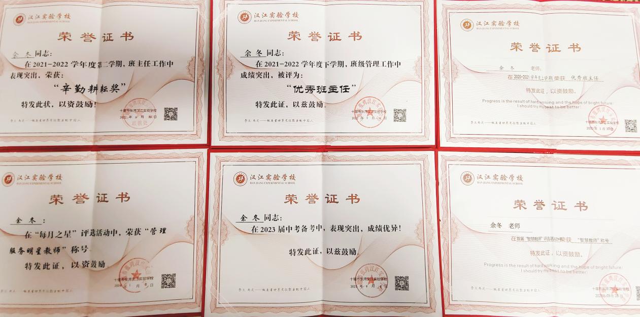 要想交给学生一碗水,那你就必须有一桶水。工作中,他严以律己,并积极向优秀的同事学习。教学中,无论是在教学水平、课程准备还是学生成绩提升上,他不容许自己有一丝懈怠;班级管理中,他总是率先垂范。在汉实,自身收获荣誉的同时,他所带领的班级也多次获得荣誉。