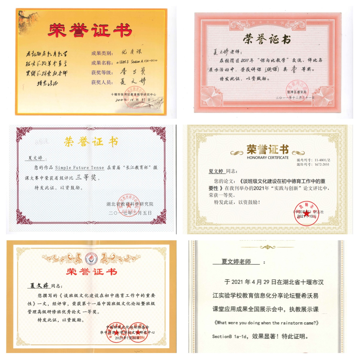 教以德为先。夏文婷老师格外重视师德师风建设,深知个人的思想道德、言行举止对学生有着潜移默化的作用。她把教书育人、爱岗敬业、为人师表作为个人职业准则,以教师的个人魅力影响学生,教育学生,关注学生成长,走进学生心灵。她将思想道德教育、价值引领融入到班级日常管理中,大道不言,润物无声。在情感上亲近学生,在思想上引导学生,在生活上关怀学生。她所带的班级,班风正、学风浓,班级氛围团结友爱,积极向上。在学校各项评比中,荣获多项荣誉称号。