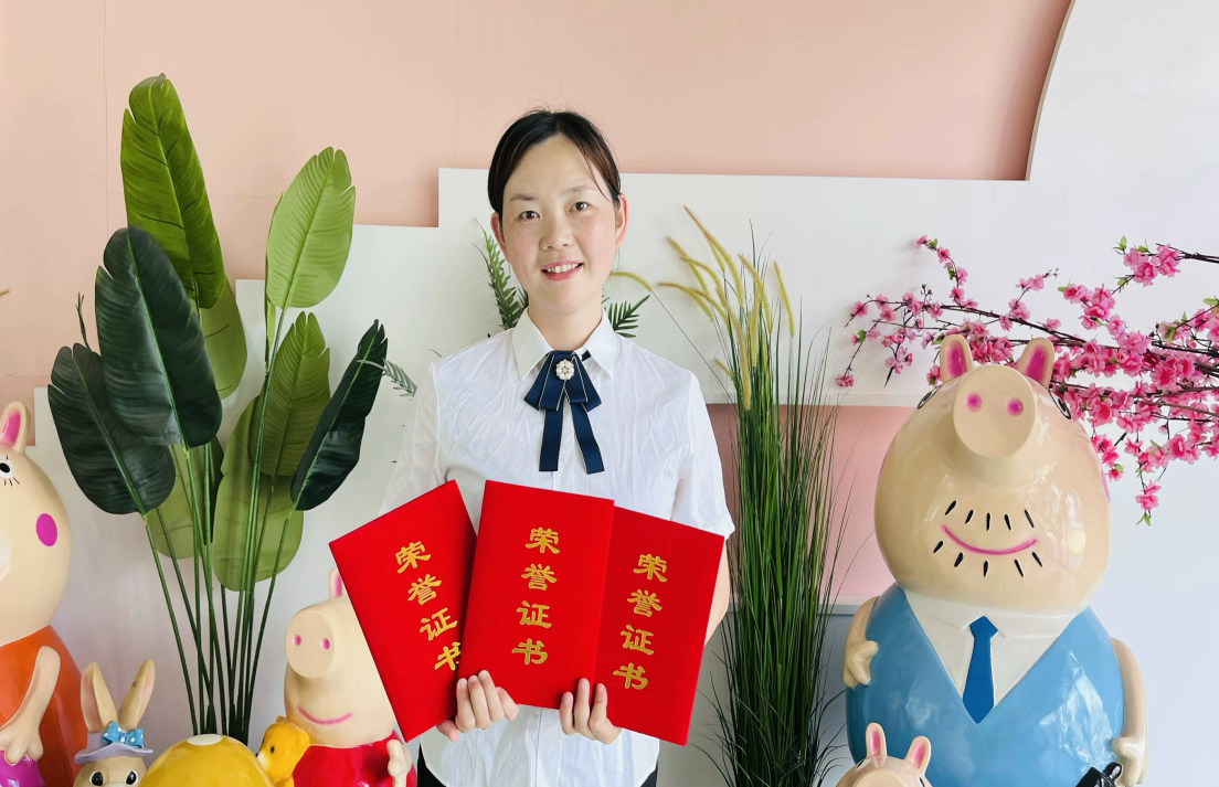 2024年湖北省教师素养大赛文件下达后,她与同伴们分享制作微课经验,解读参赛文件重难点。为了追求课程质量,下班后她带领着自己5岁孩子在录播厅一遍遍录,一遍遍筛选,当她觉得已经达到自己想要的效果时,转身发现孩子已经趴在桌上睡着了,此时已经是夜晚23:00整,那一刻的心情五味杂陈。她总是和身边的同事说:只要有比赛平台就一定要去试一试, 因为比赛只是一种形式,更重要的是提高自我。 她始终在为自己制定更高的目标,通过不断的努力最终亦得乎其上。