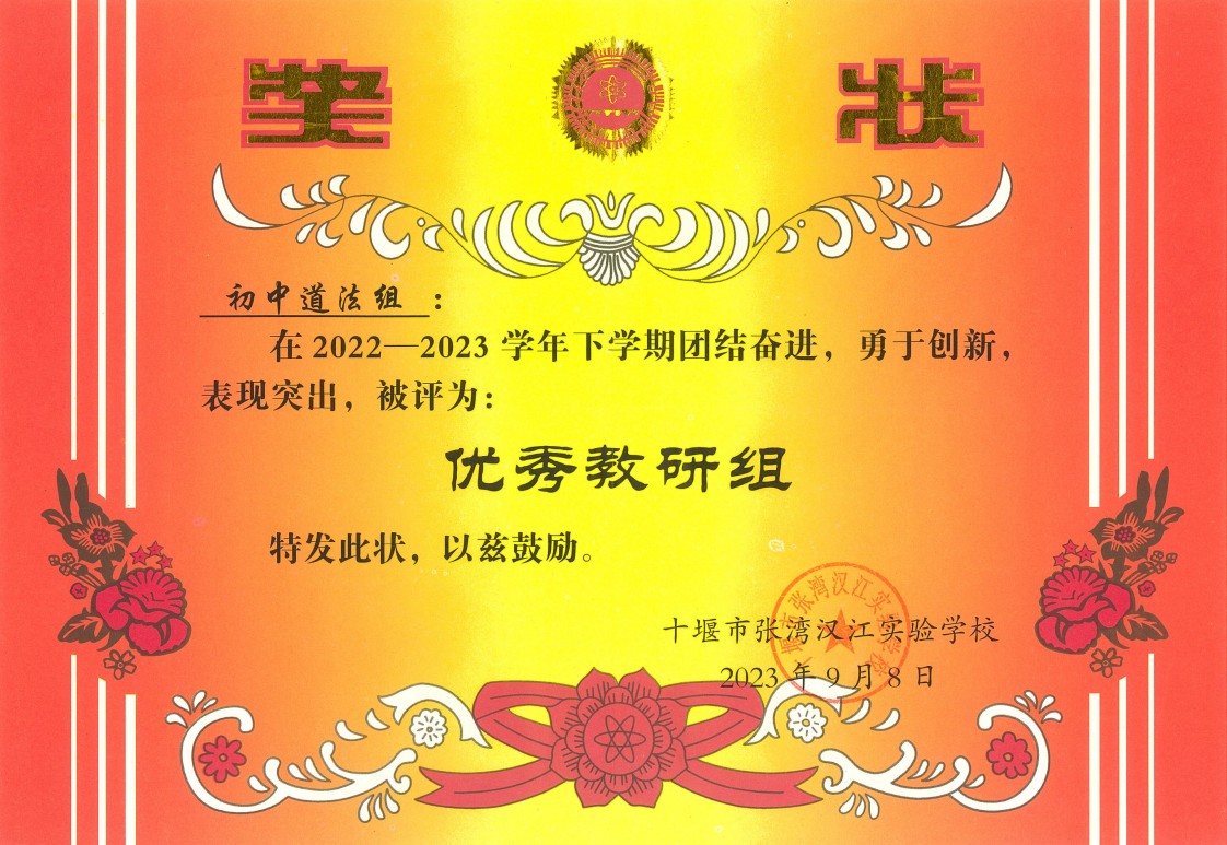 杨老师作为一名党员,时刻保持党性,信念坚定,不断学习,锐意进取,严于律己,带领汉实道法组多次荣获“优秀备课组”“优秀教研组”等荣誉称号。