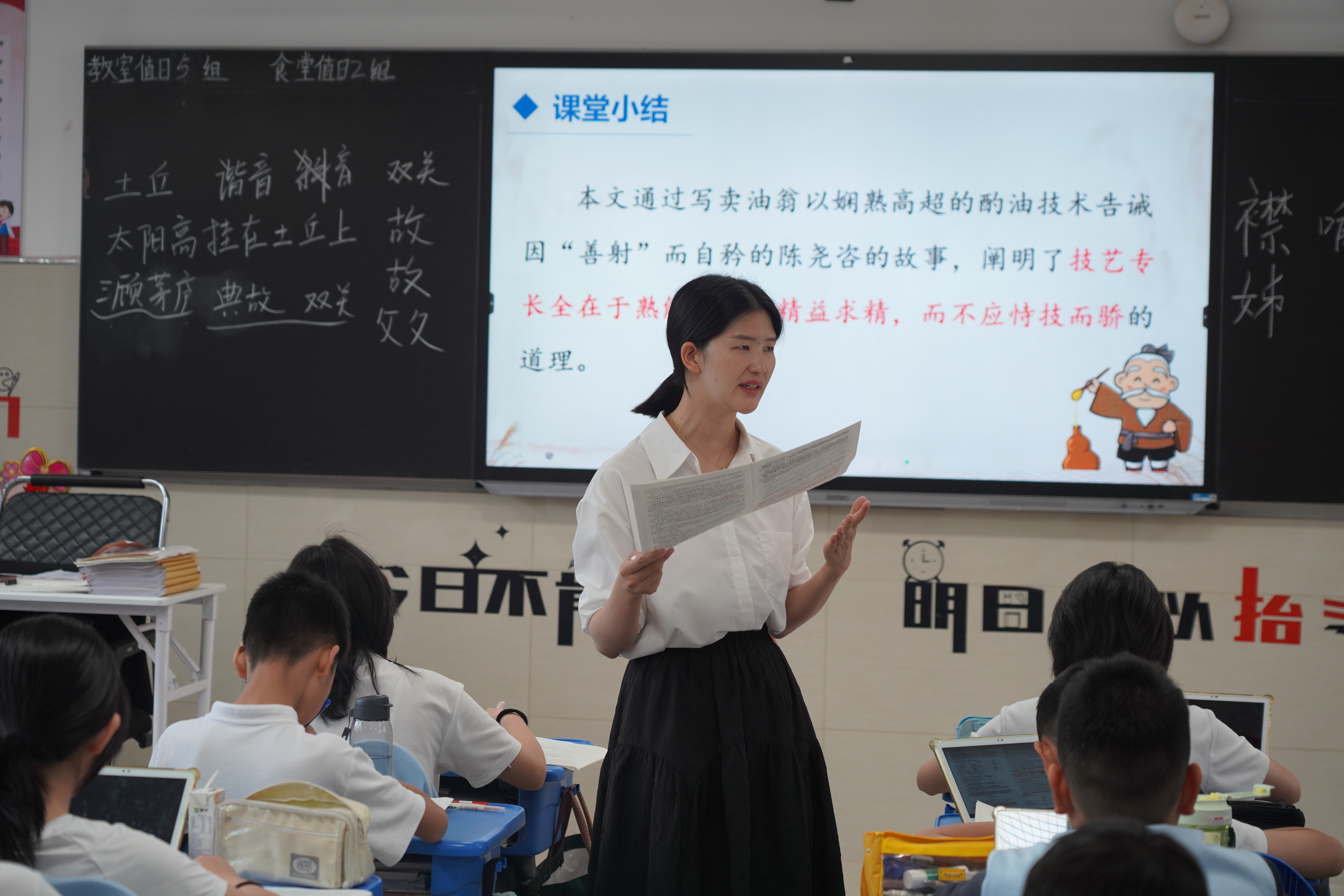 在日常备课时,翁老师认真研读新课标,深入钻研教材,把握教学重、难点,同时考虑学生的认知水平和兴趣点,将抽象的语文知识变成生动有趣的课堂内容,根据课标要求和班级学情不断优化教学设计,精益求精,每节课都经过精雕细琢,在日常教学中逐步提升学生学科素养。