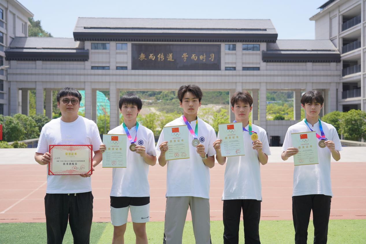 左一:王延辉(教练员) 左三:王子昊 左四:向勃睿 左五: 方书煜 左六:蔡友炜 右一:朱旭(带队老师) 右二:袁康(带队老师)