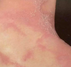 隐翅虫本身不咬人,但搔抓或拍死压碎隐翅虫后,其毒液释放,在接触部位会出现点、片状或条索状红斑,伴痒,兼有灼热疼痛感。