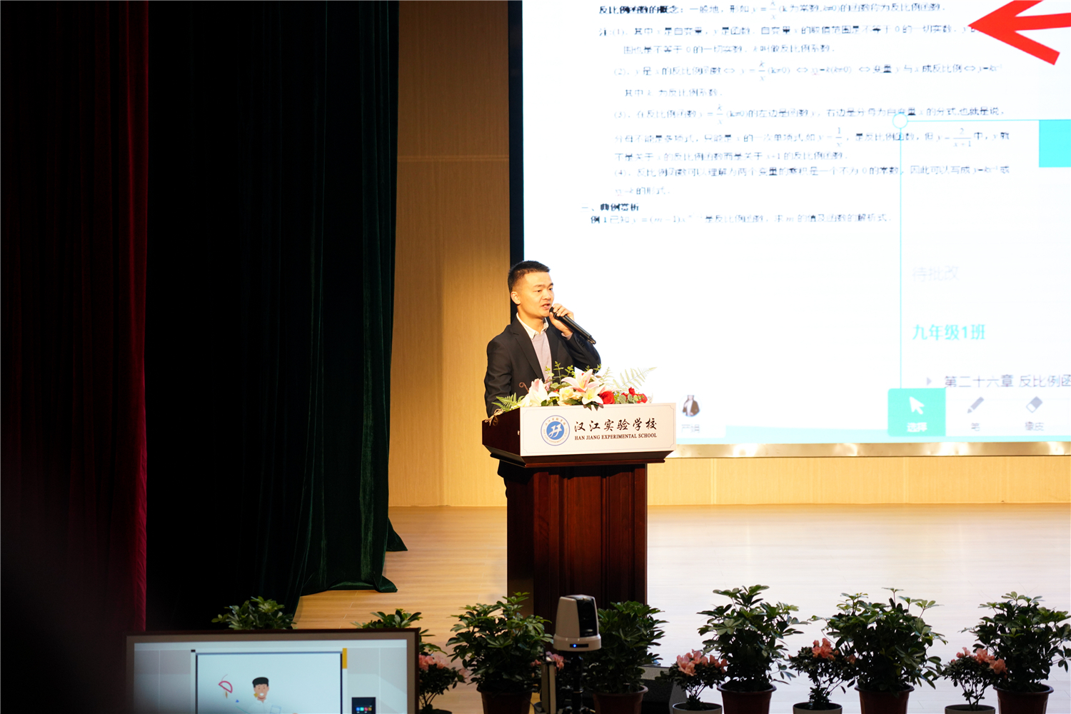 会上,我校参加常态课展示的教师代表严娟和杨志分别进行了课堂信息技术应用及融合的分享。小学语文老师严娟介绍了她在六年级语文课《夏天里的成长》教学中如何利用信息技术调动学生学习的积极性,如何通过飞花令、蒙层、分层推送、游戏竞技等促进学生高效互动以及利用评价工具对学生进行科学评价等情况。初中数学老师杨志以九年级数学课《反比例函数》为例,通过信息技术功能演示,结合学生学情分析、教材分析、教学目标等课堂实际,展示了我校高效智慧课堂的常规教学流程,分享了自己在信息化应用方面的教学经验及深刻思考。
