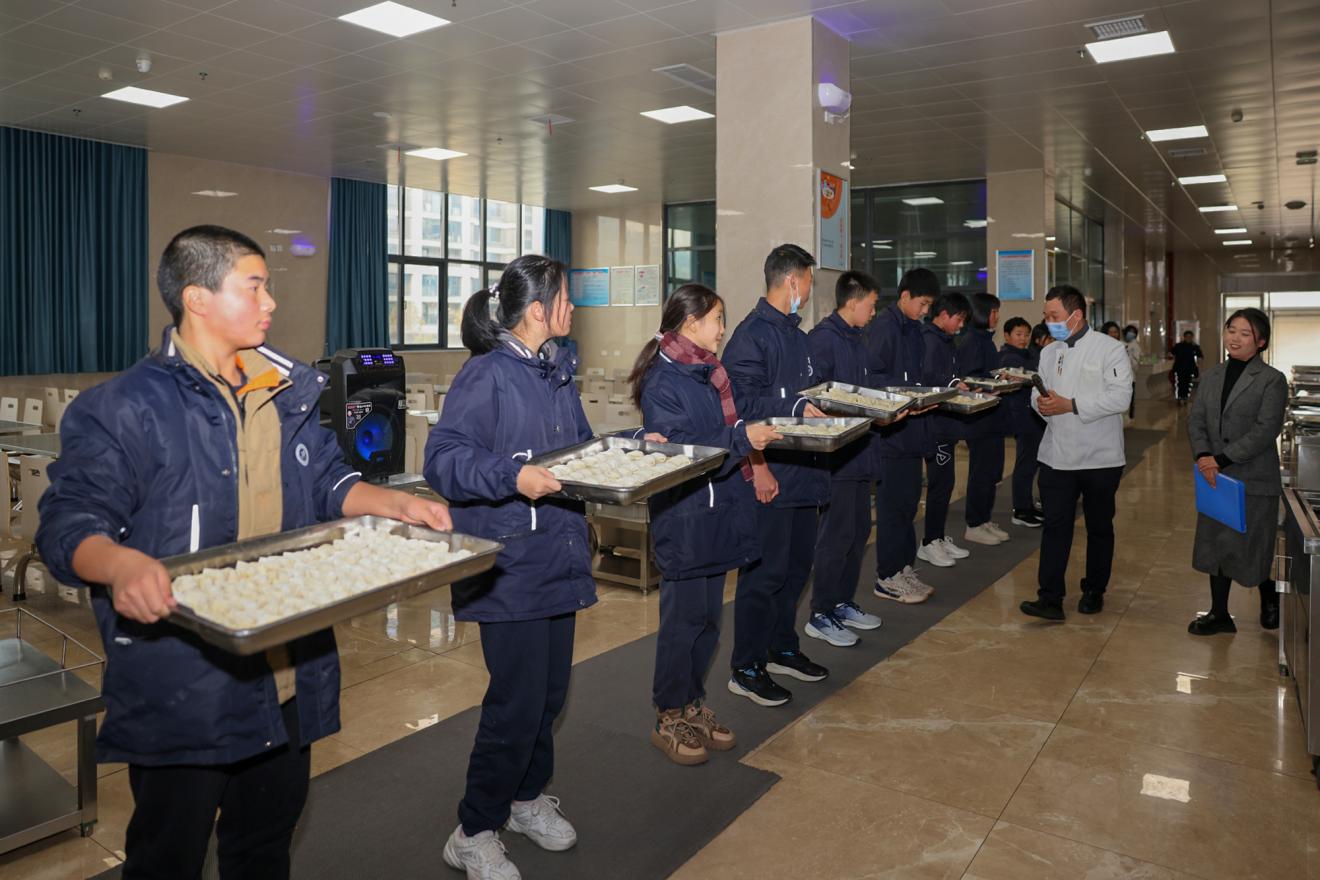 12月20日下午,汉江实验学校初中部和小学部组织学生在学校食堂举行了一场别开生面的包饺子活动。