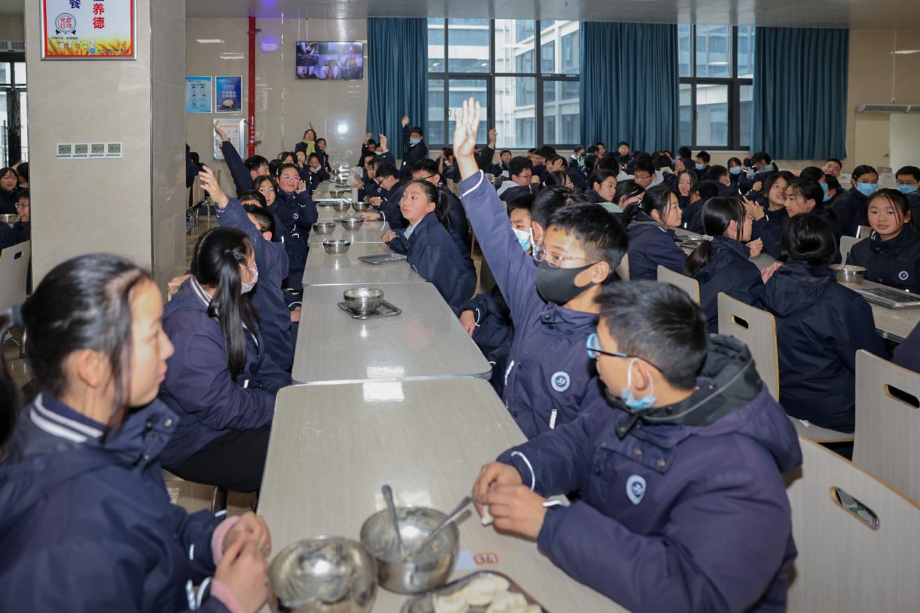 各班老师组织学生有序进入餐厅,做洗手准备。开始前,生活老师通过播放包饺子视频,让同学们对这一传统活动有了初步的了解和认识。每个班级分成6个小组,并推选了4名包饺子“小师傅”进行技术指导。