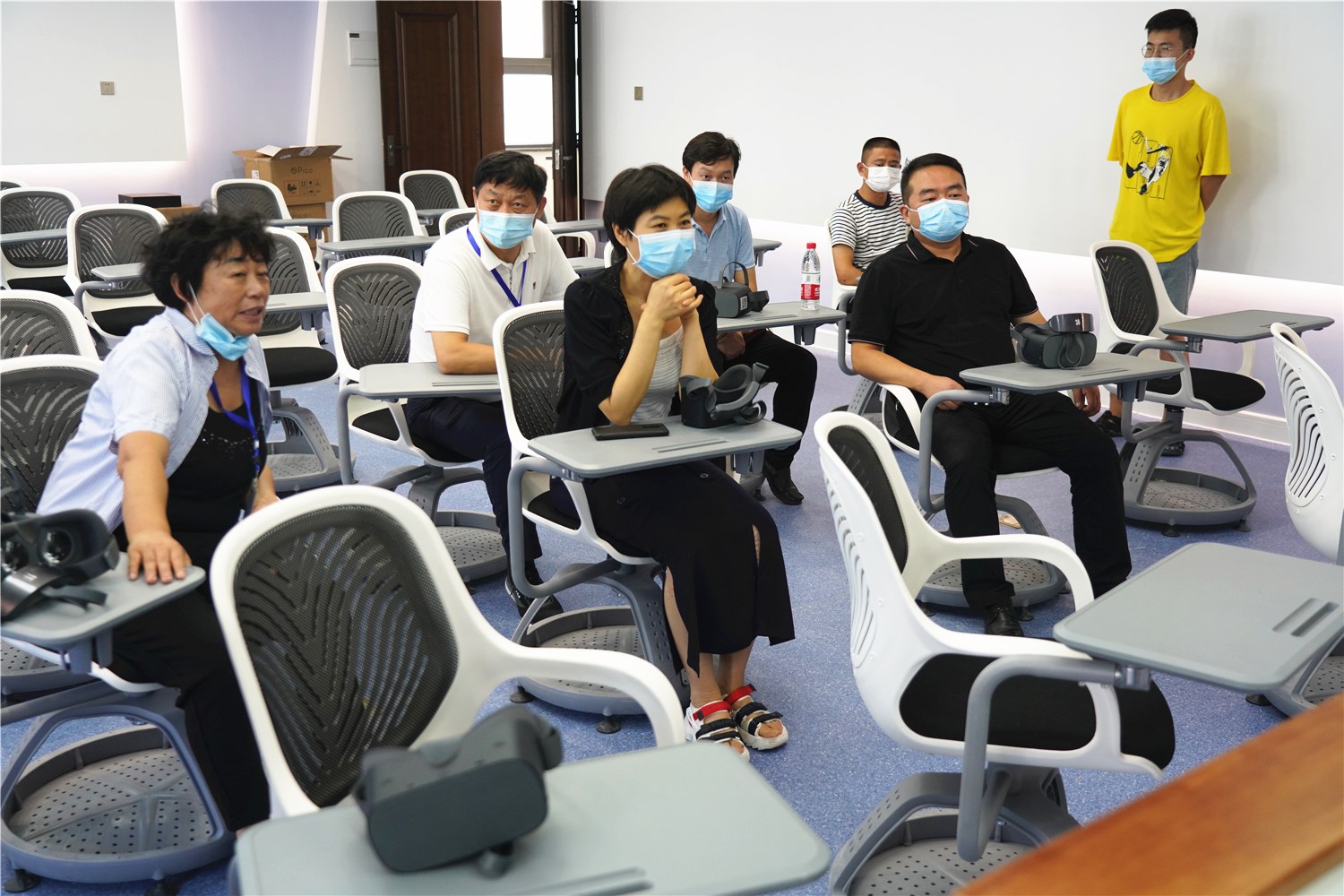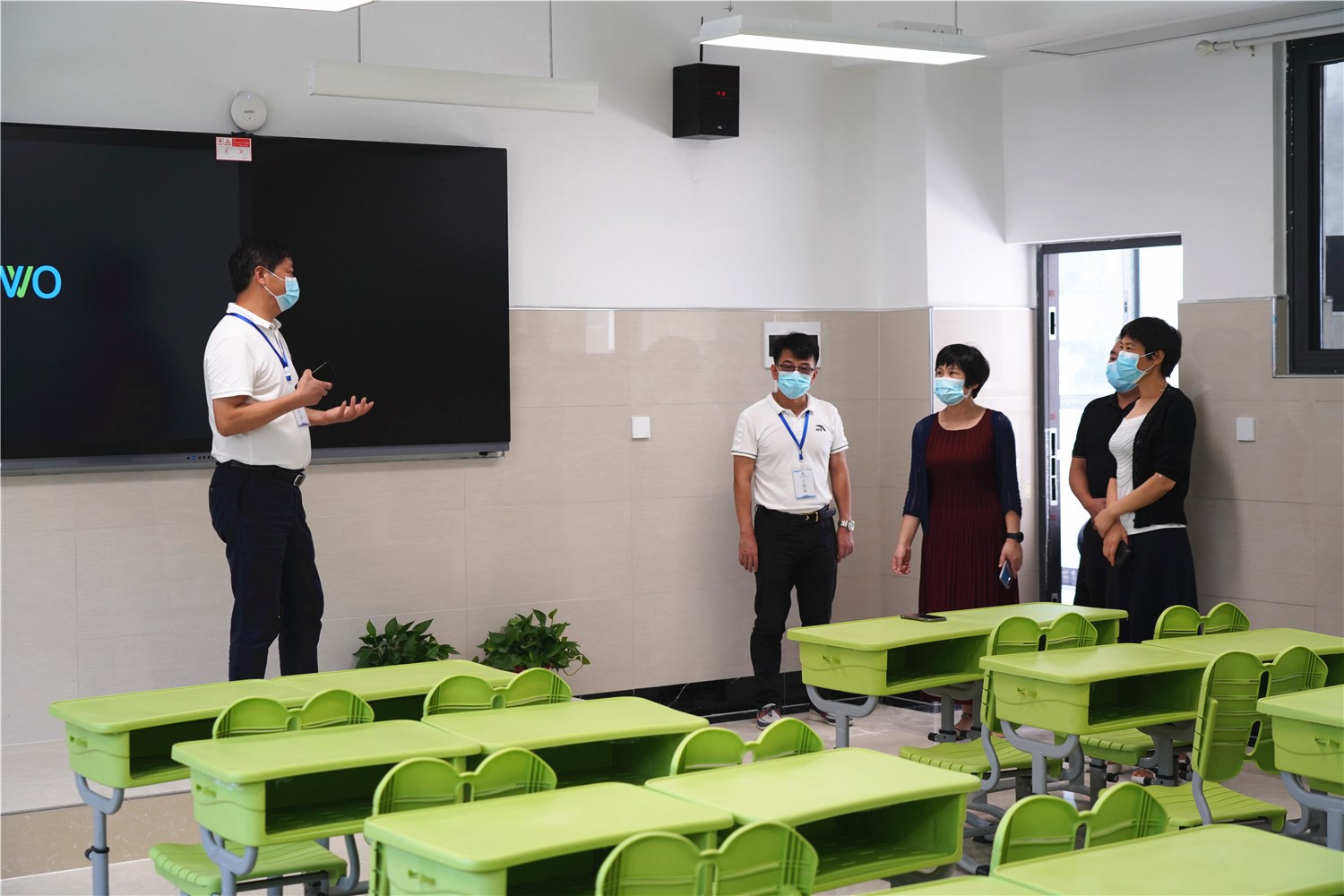 周区长一行参观了学校校园环境、标准教室,体验了VR虚拟体验室、电子沙画室、电子书法室等功能室,对学校优美的校园环境和先进的教学硬件表示肯定。
