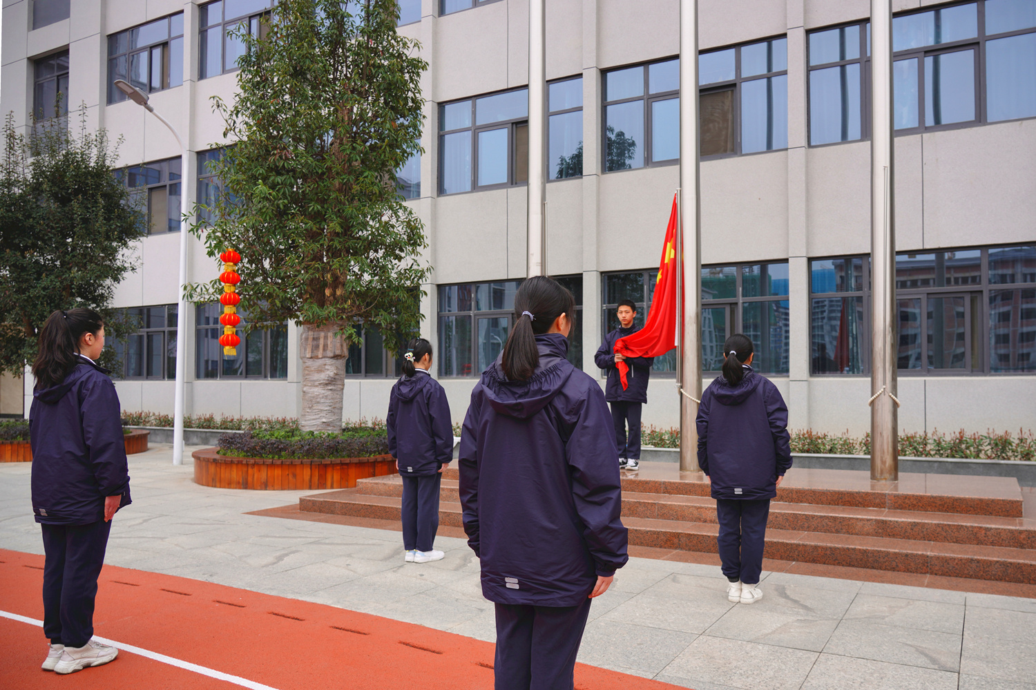 开学典礼在庄严而又神圣的升旗仪式中拉开帷幕。国旗护卫队迈着整齐、坚定的步伐走向升旗台,全体师生肃立、行注目礼,少先队员行队礼,冉冉升起的五星红旗激励着每一位汉江师生奋发向上,锐意进取。