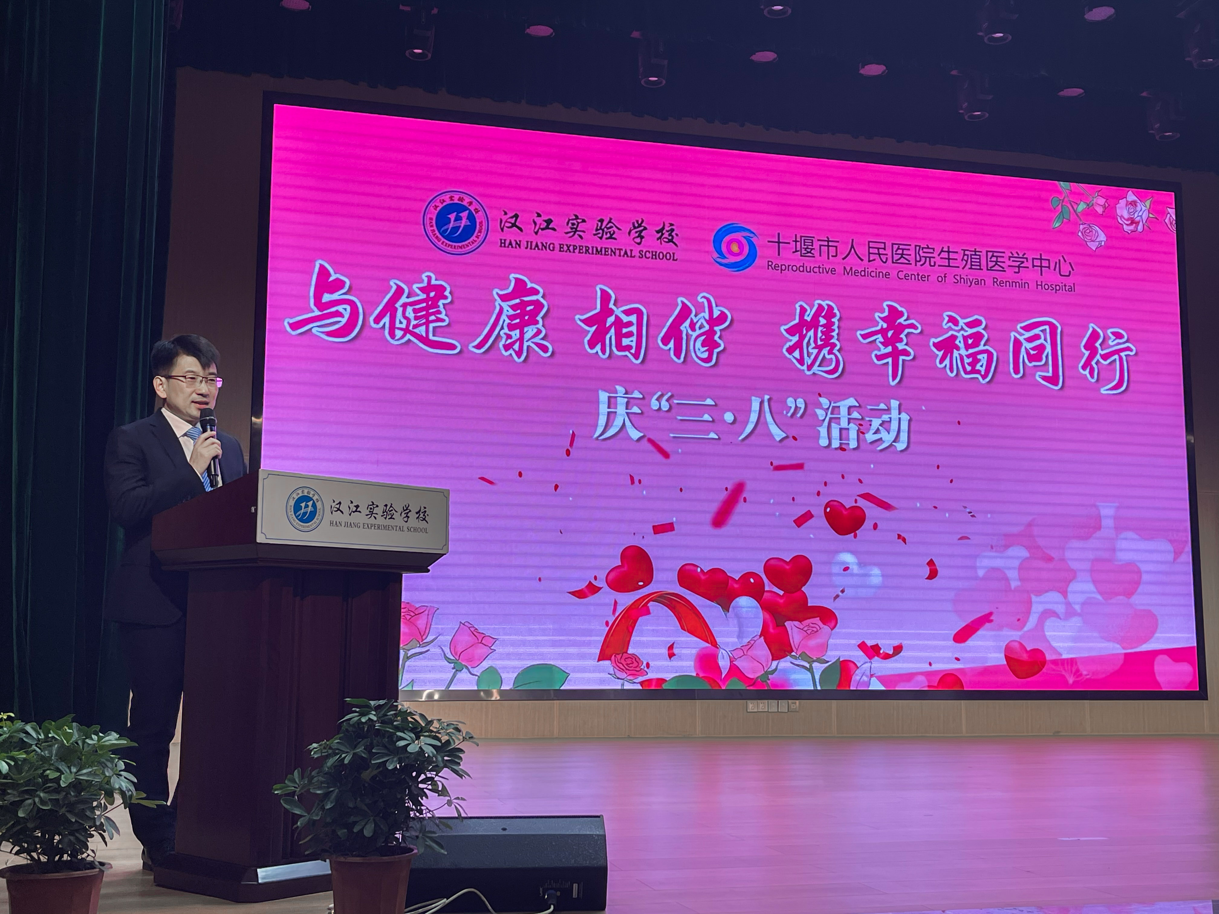 2021年3月8日,我校特邀十堰市人民医院生殖医学中心创始人张昌军教授在我校报告厅举办了“与健康相伴,携幸福同行——汉江实验学校庆三•八”健康讲座。十堰市人民医院生殖医学中心主任张颖博士、信息部部长胡冬玲、护士长陈娟;汉江实验学校董事长何蕾,校长朱仕竹,副校长王宇、陈伟、张旭东出席此次健康讲座,全体女教职工参加讲座。