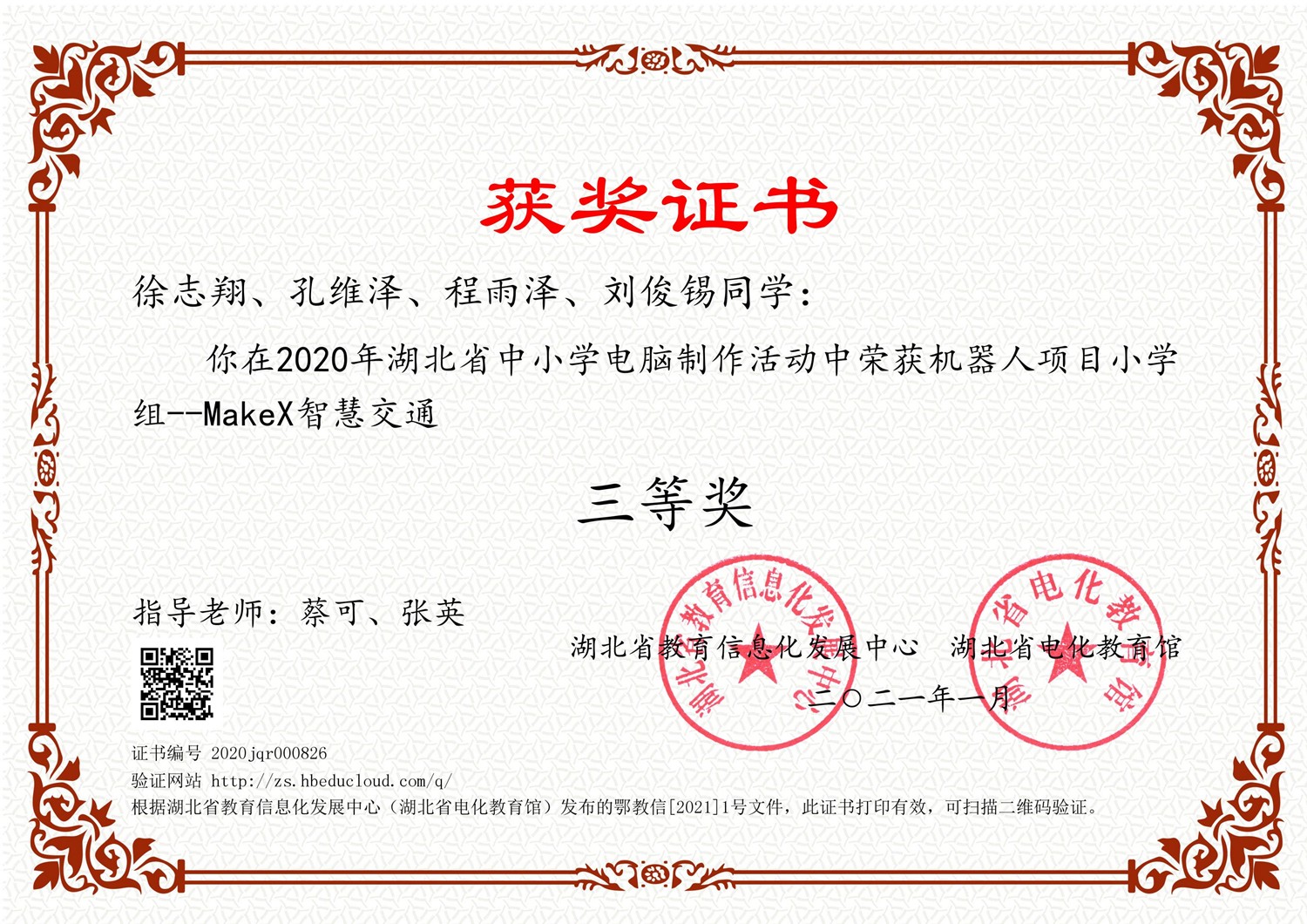 我校教师指导学生在2020年湖北省中小学电脑制作活动竞赛中荣获省级二等奖。