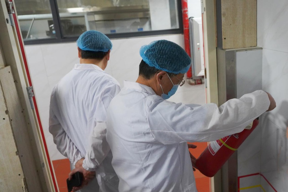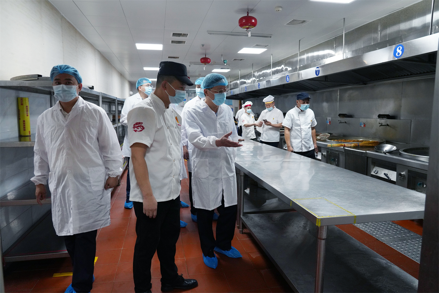 领导检查我校食堂食品检测室,在“安食智厨”系统查看检测结果