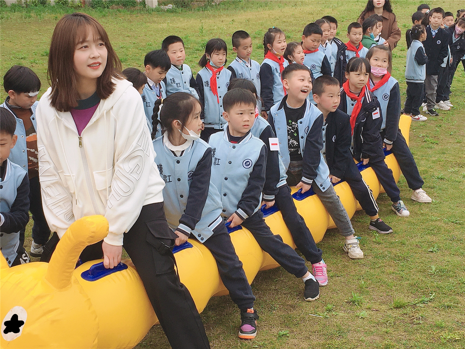 参观间隙,全体师生一起进行了毛毛虫、廊桥搭建、珠行万里、“南水北调”送水工程等热闹欢快的拓展活动,孩子们的欢声笑语让整个研学活动充满了能量。