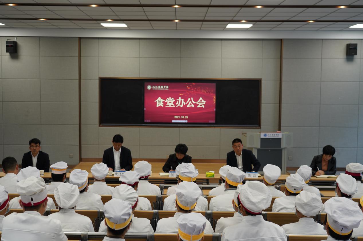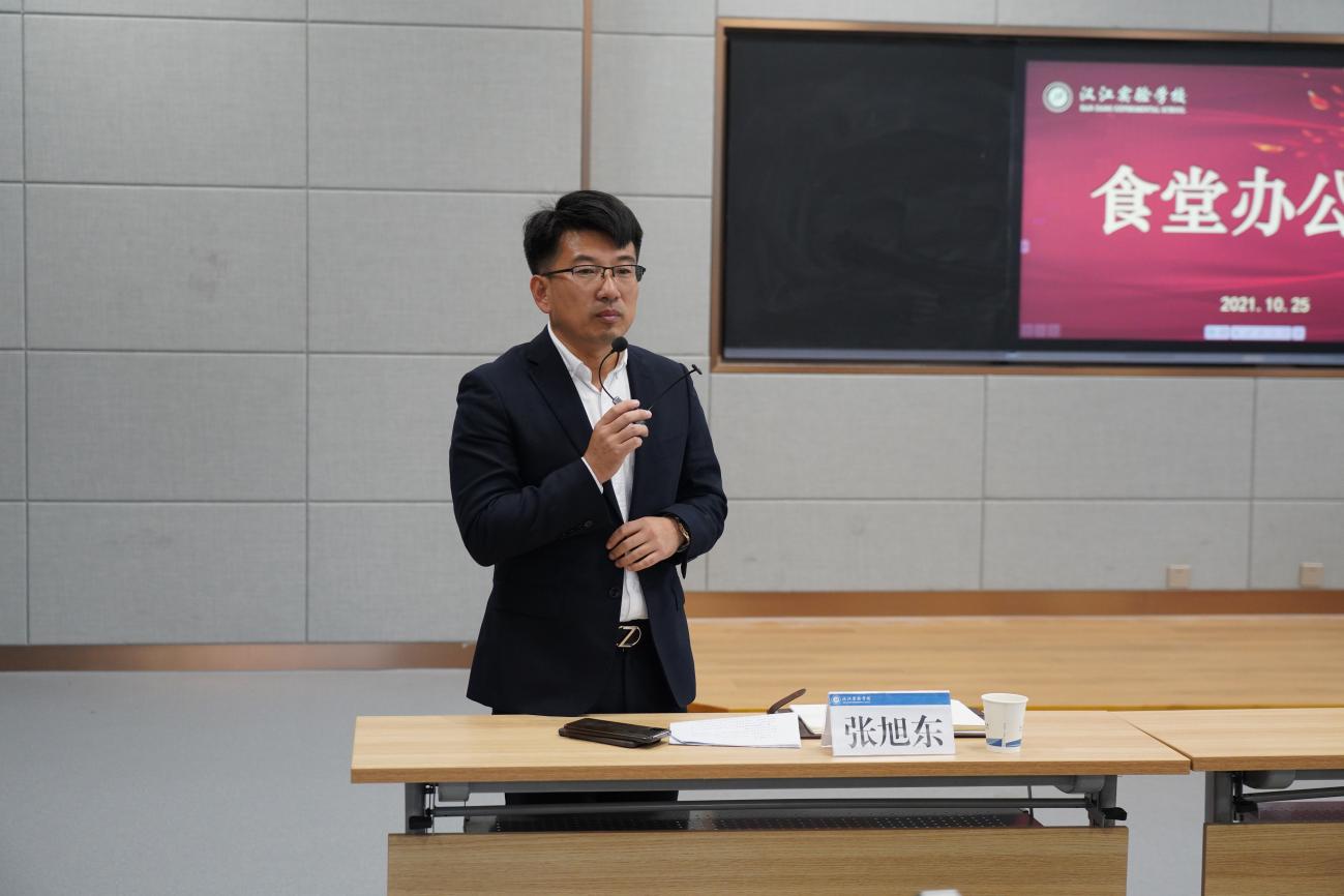为加强食品安全工作,提升食堂餐饮服务质量和服务水平,2021年10月25日,我校召开食堂专题会议。汉江实验学校董事长何蕾,校长朱仕竹,副校长陈磊、王宇出席会议,全体食堂员工参会,副校长张旭东主持。