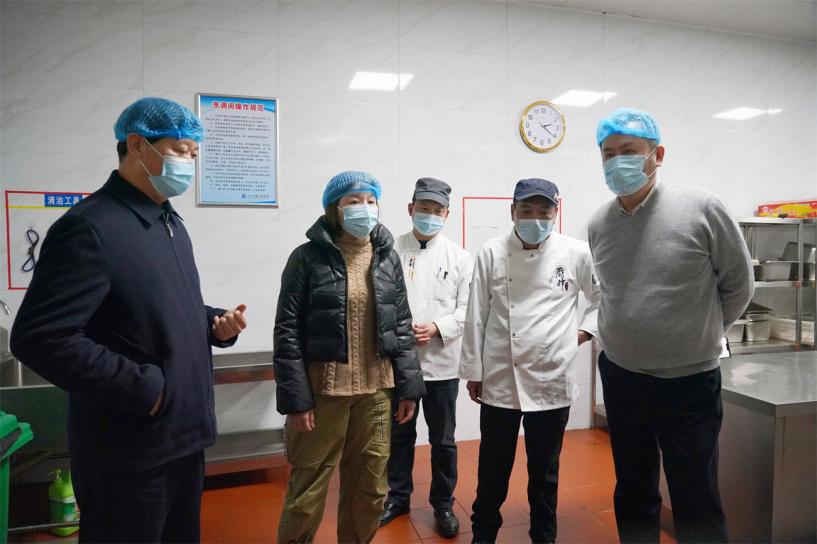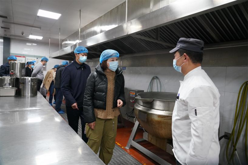 陈洁处长一行现场参观了我校食堂,重点检查了食堂的环境卫生、食品采购加工、餐具消毒、食品留样等方面工作,仔细查看食堂的各项制度。