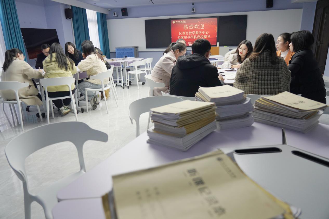 听课结束,视导组老师与各学科授课教师分组进行面对面研讨交流,结合课例逐一点评分析,就如何提升教学教研实效、加强新课标研究等问题提出意见和建议。在常规管理检查环节,视导组认真查看了教师们的教案、作业批改、听课、评课和教研情况记录等情况,对我校教师的手写详尽教案、课后反思、细致的作业批改、初中的校本练习册《精讲精练》等给予充分肯定。