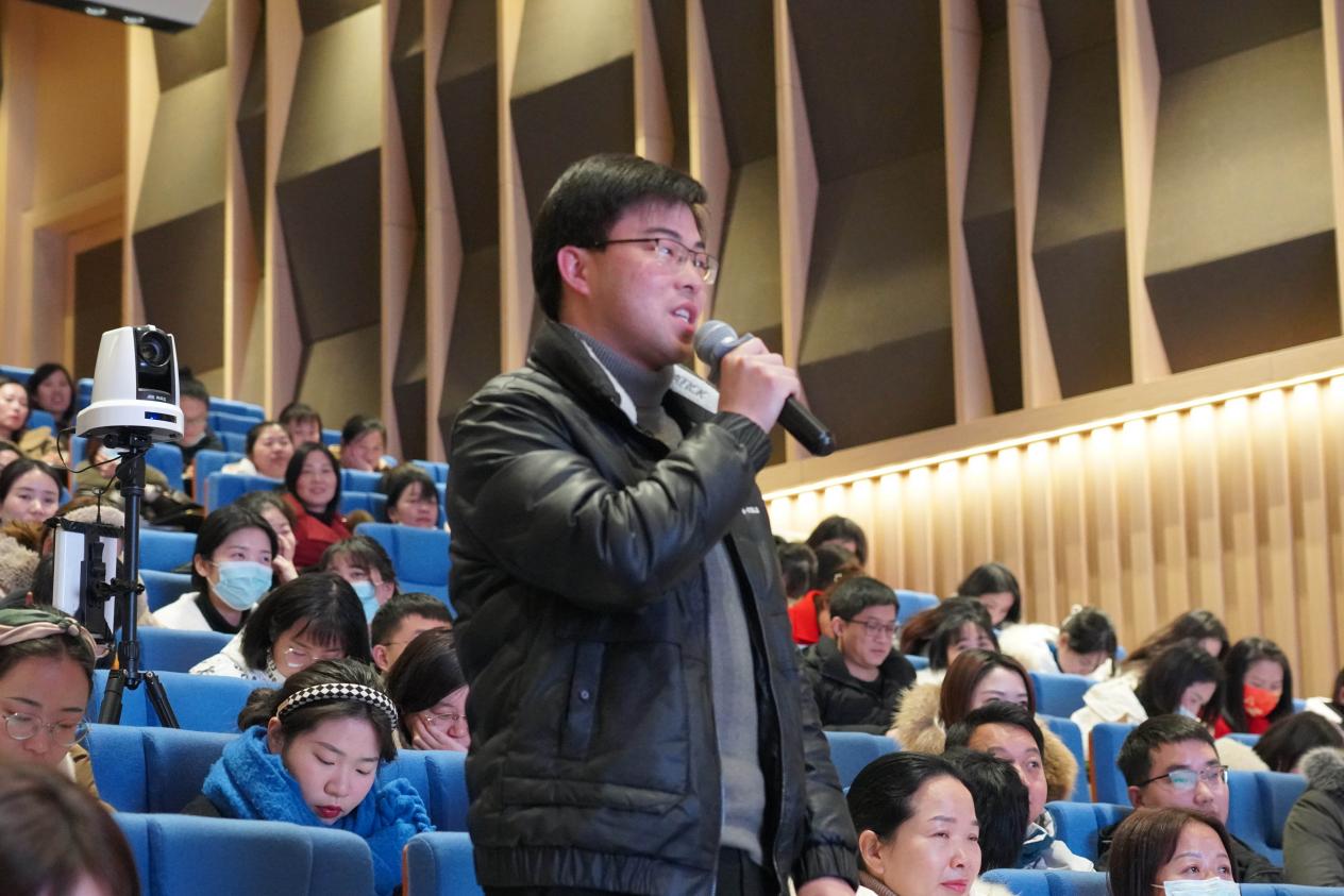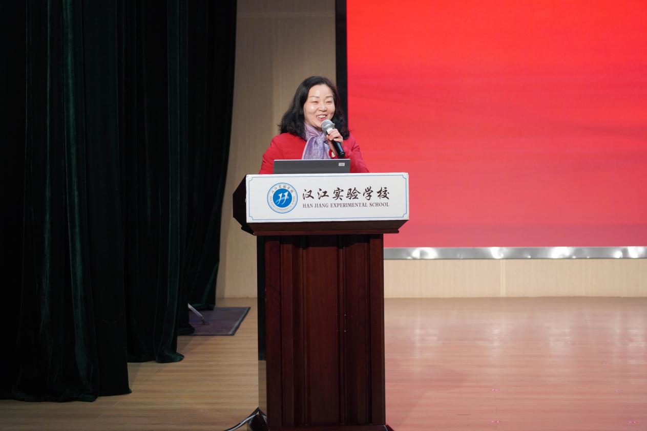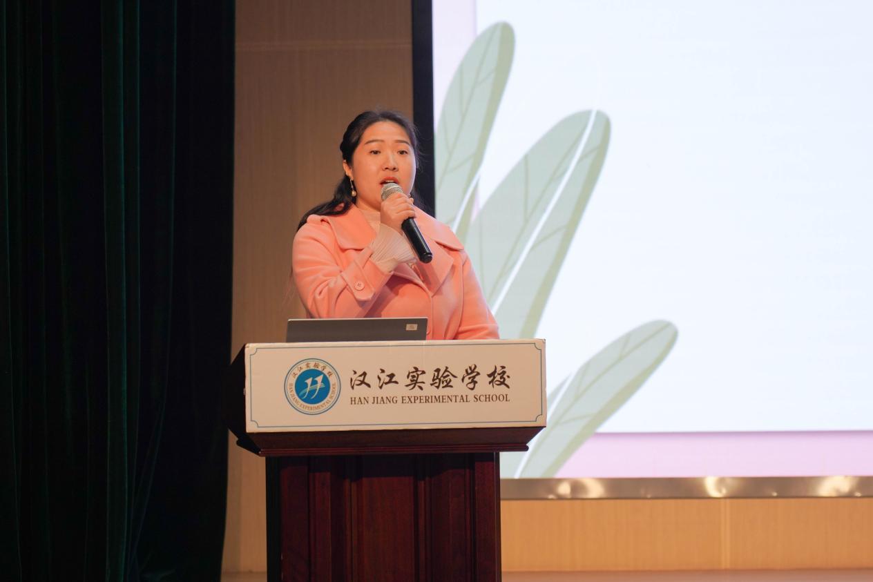培训结束后,各学部优秀教师代表分别上台分享了自己的学习收获。幼儿园教师顾江微用“幸福、收获、提升”三个关键词总结她的学习体会,就幼儿园日常的工作谈及自己的教学心得,希望自己和汉实大家庭一起争做善于发现、勤于学习、精于练笔的智慧型教师。小学语文教师徐晓丹回忆起她在汉实学习成长的点滴,从“青蓝工程”的帮扶到日常的讲课、评课、磨课,她脚踏实地的积累,勤勉刻苦的钻研,收获了属于自己的教师职业幸福感。初中部英语教师李娜分享了自己参与培训的所想所思,她提到要热爱教师工作,拥有职业认同感和归属感,树立终身学习的教学理念,最终必然会将这份工作尽善尽美。