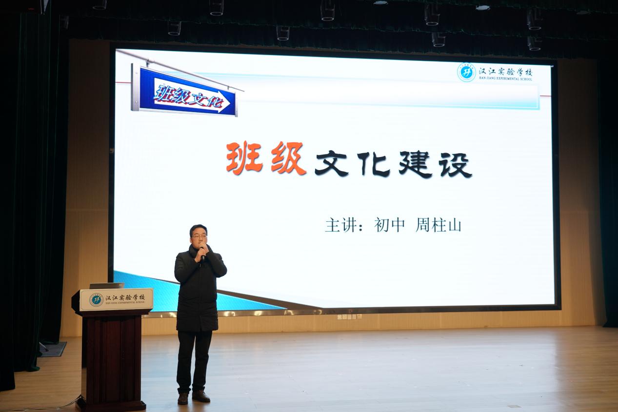 少先队大队辅导员、小学部数学教师彭钰,校团委书记、初中部数学教师周兵分析了班主任的多样角色,由班主任细化到分钟的各项工作展示了班主任的一日常规工作内容;小学部数学教师许敏、初中部英语教师全小珊讲述了自己从事班主任工作以来的心路历程和有趣的小故事,将班主任这份工作中掺杂的不易与辛劳、幸福与享受展现地淋漓尽致。小学部英语教师程思祺分享了自己有目标、有方向、有制度,宽严相济,严爱结合的班级管理模式,初中部语文教师周柱山分享了对班级文化的见解和班级文化建设的经验,让老师们了解到特色班级文化建设的重要性。