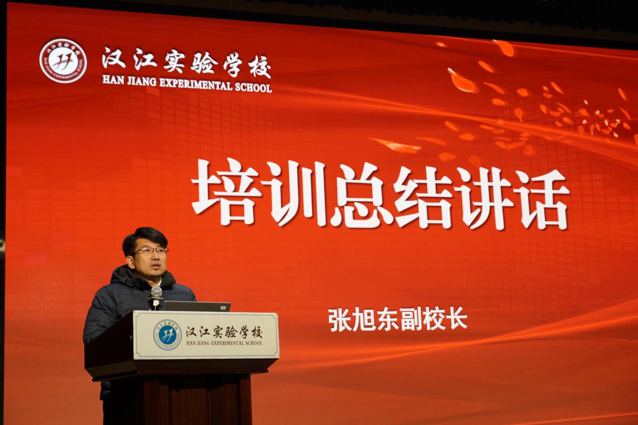 副校长张旭东对教师们提出殷切期望,并分享邓小平同志的“学习是前进的基础”这句话与全体汉实人共勉,希望教师们通过此次培训学习,学有所得、学有所悟、学有所长;在日常的教育教学工作中,做到德育为先,务实肯干,虚心求教,在增进汉实文化认同中坚定汉实文化自信,尽好教书育人职责。