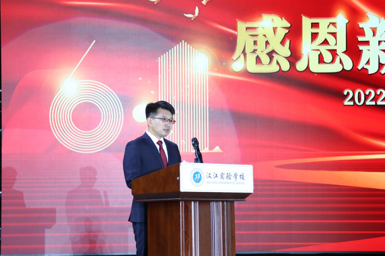 校长朱仕竹热烈欢迎莅临现场的各位领导及嘉宾,并向可爱的孩子们送上节日祝福。朱校长详细介绍了我校董事长何蕾女士的办学初衷、学校办学理念、扎实推进的四大计划以及学校的首期刊物《大柿子树》。汉江实验学校将在社会各界的支持和关怀下,全体汉实人的辛勤耕耘下,踔厉奋发,笃行不怠,将我校办成家长信赖、学生喜爱、教师自豪、社会认可、人民满意的一流名校。