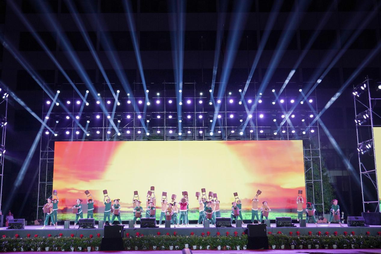晚会全程由我校师生精心编排、倾情表演,包括舞蹈、器乐表演、朗诵、英语童话剧、篮球操、合唱等13个节目,艺术表现形式多元丰富,为线上、线下的观众呈现了一场美轮美奂的视听盛宴。