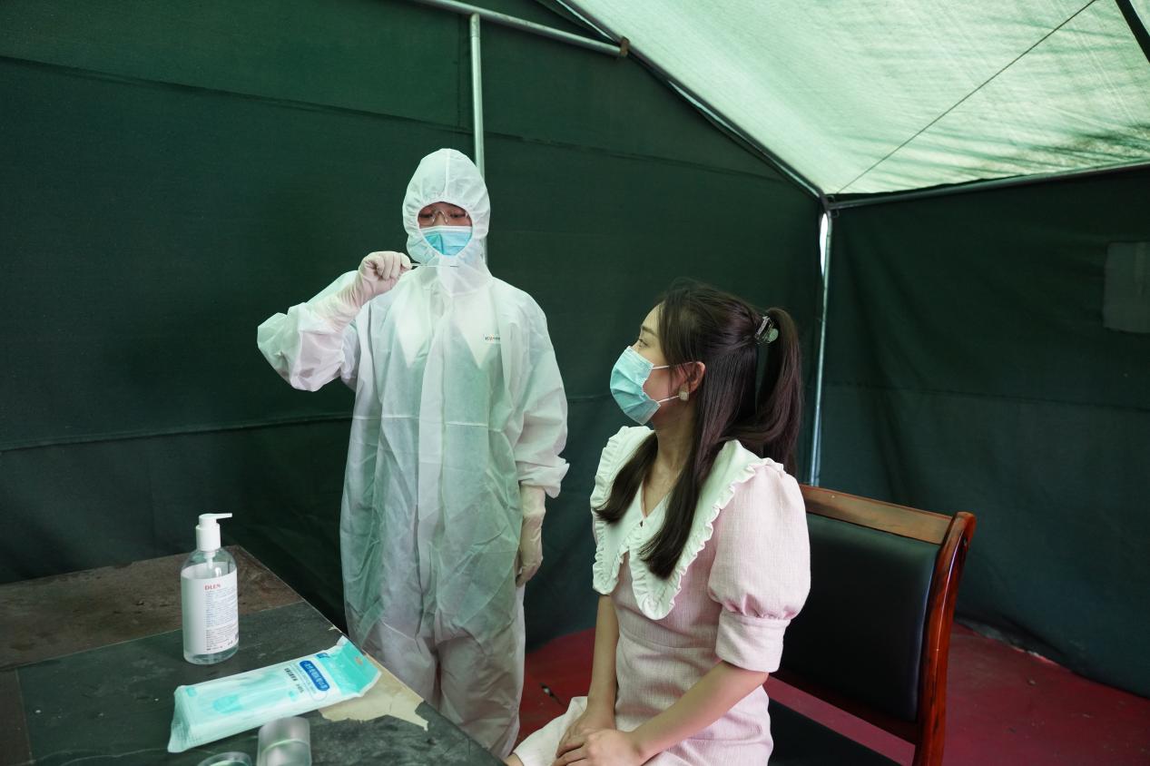 带体温异常教师到留观室复查体温并询问行程轨迹及密接人员