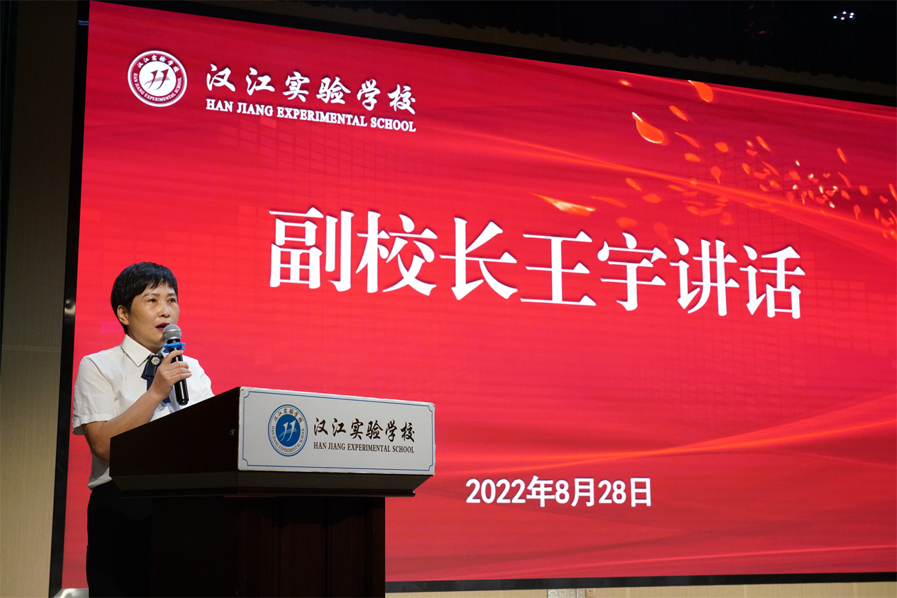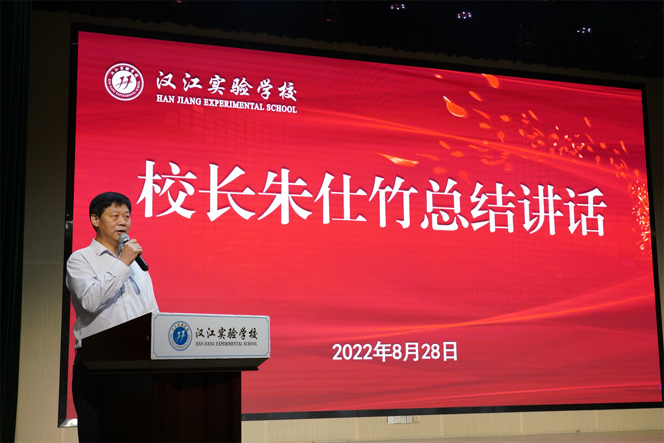 校长朱仕竹作《与时俱进,顺势而为,全力打造汉实品牌》的主题培训,从学校文化建设、汉实文化的特征和根基、汉实文化理念识别系统、汉实文化理念对教和学的基本要求四个方面深入剖析我校文化内核,详细讲解了汉实核心理念内涵及教育延伸、如何培养崇文尚武的学生、汉实学生的基本素养等内容,并带领全体教职工学习习近平在全国教育工作会议上的讲话,深挖我校校训“教而传道 学而时习”的内涵,告诫教师们要培养热爱教育事业的纯洁情感、培养爱党爱国爱人民的崇高情感、培养热爱生命热爱学生的情感、培养博爱的精神境界,做有理想信念的好老师。随后,朱校长对汉实文化特性、汉实文化根基、汉实文化《发展纲要》、汉实“四大计划”一一作了阐释。他提到,新学期我校将继续加强学校管理队伍和教职工队伍建设,全面贯彻党的教育方针,坚持立德树人的根本任务,秉承学校办学核心理念,渗透“唯生、唯实、唯品”的汉实文化特性,为党育人,为国育才,齐心协力培育德智体美劳全面发展的合格人才,用心、用情、用爱铸就汉实品牌。